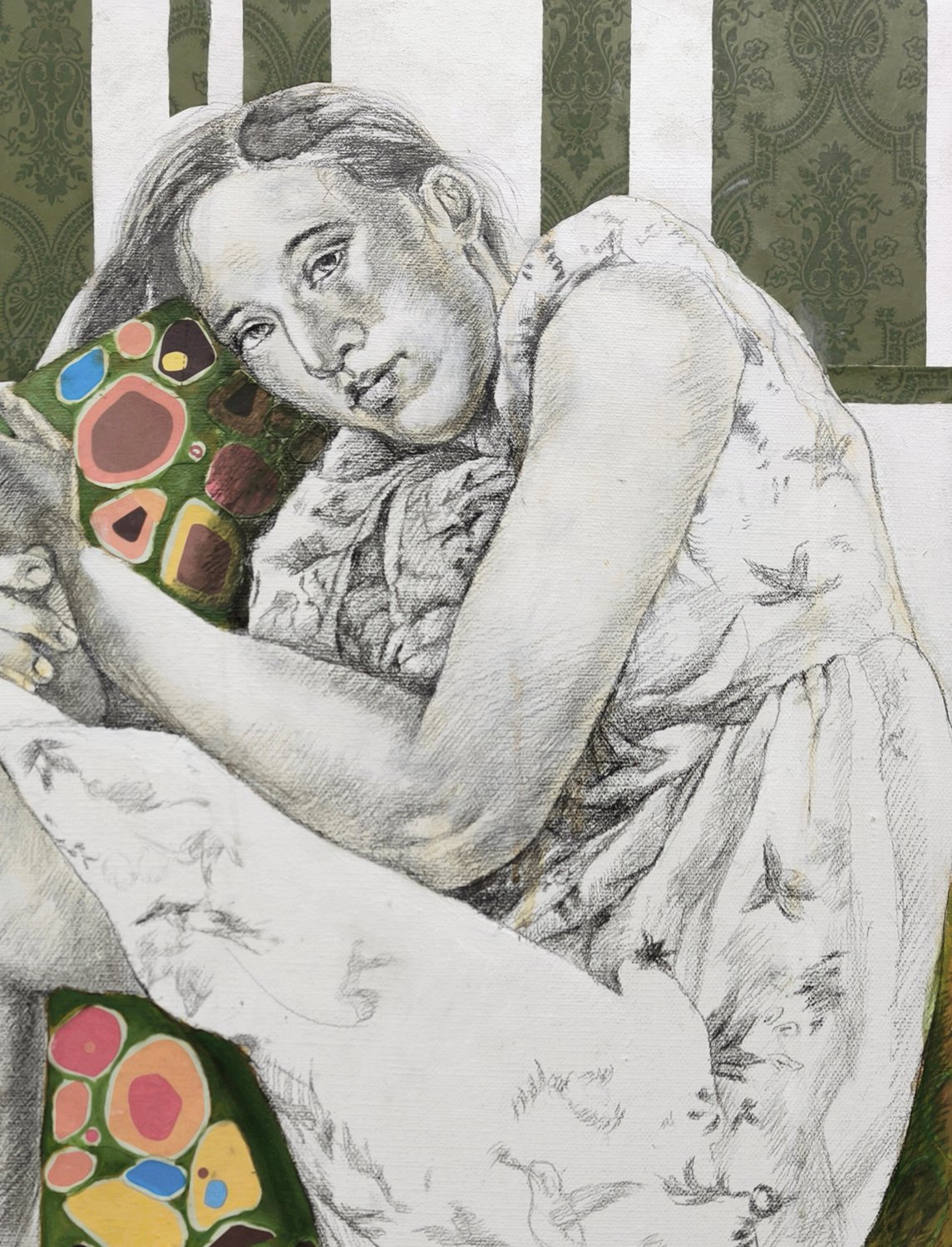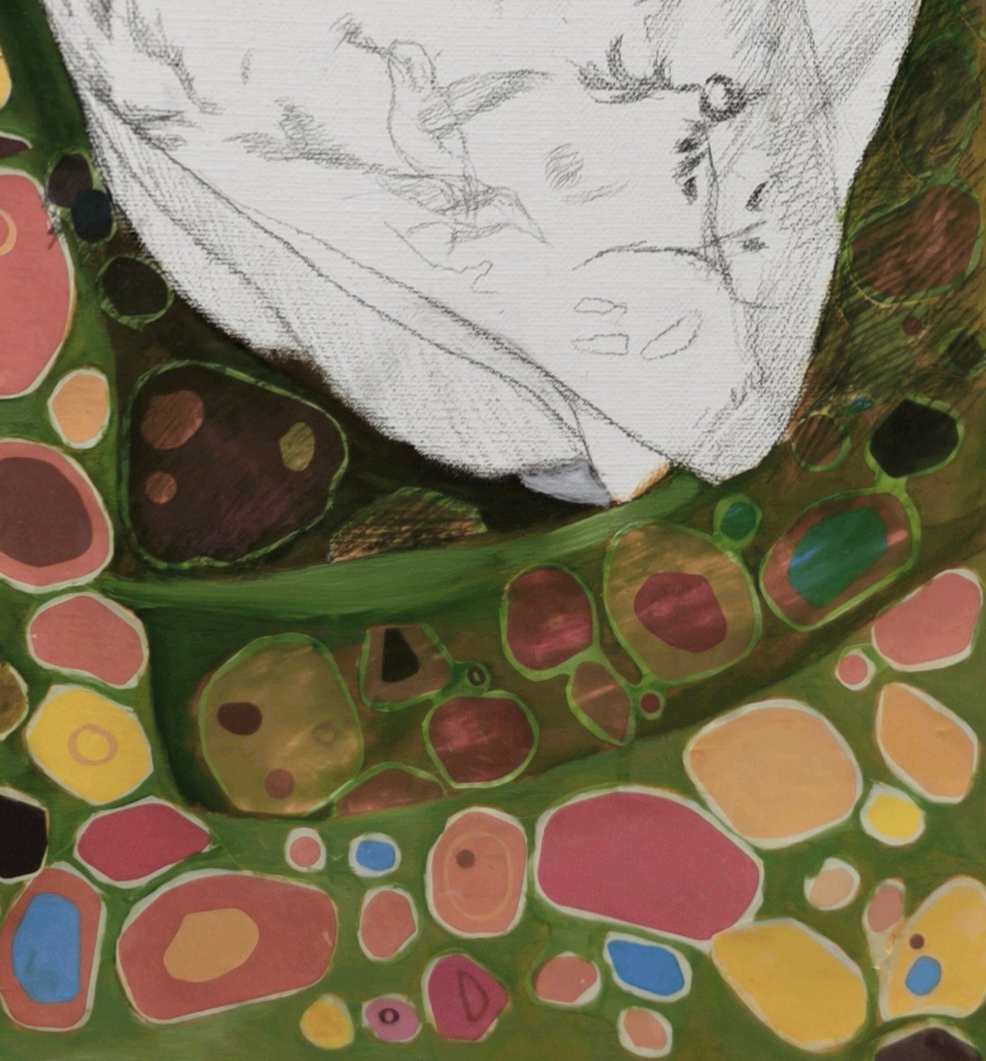 Technique: - Sketch on canvas, oil on canvas, paper cut