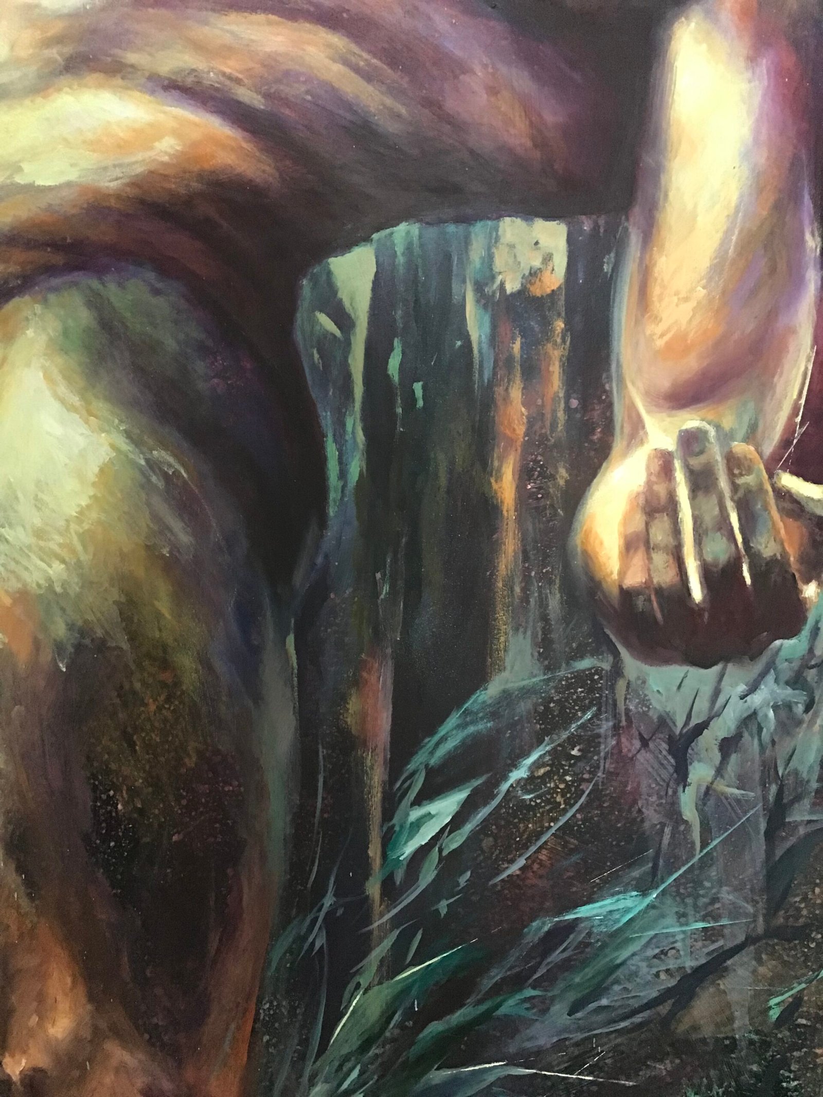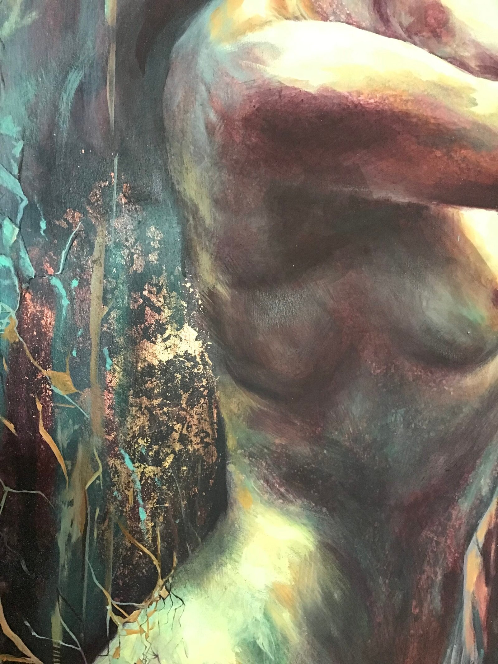 Obra que representa la fusión de la naturaleza en el cuerpo humano en sus dos facetas ,masculina y femenina en un ambiente de fantasía con diferentes alusiones que pueden evocar al espectador .