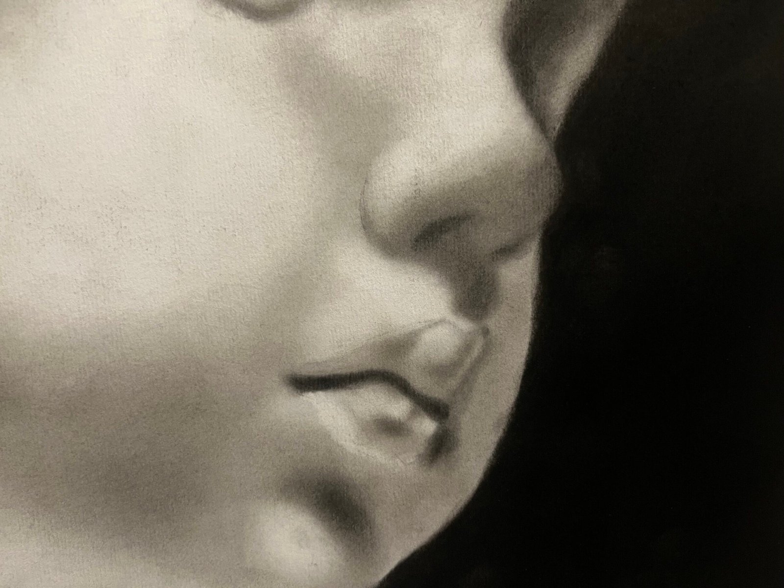 A statue of an angel with closed eyes, radiating a profound sense of silence and serenity. Its intricate details impart a mysterious and spiritual essence to the artwork.