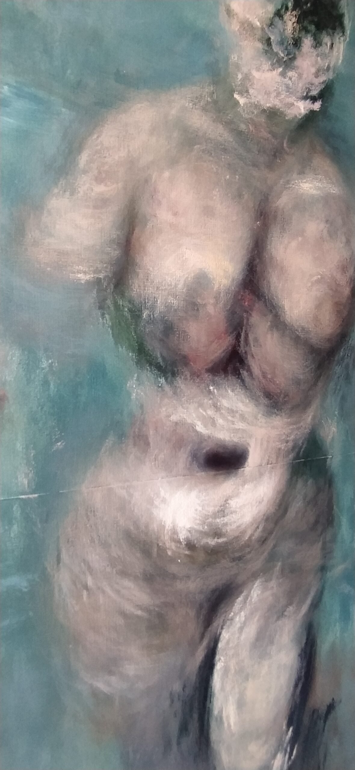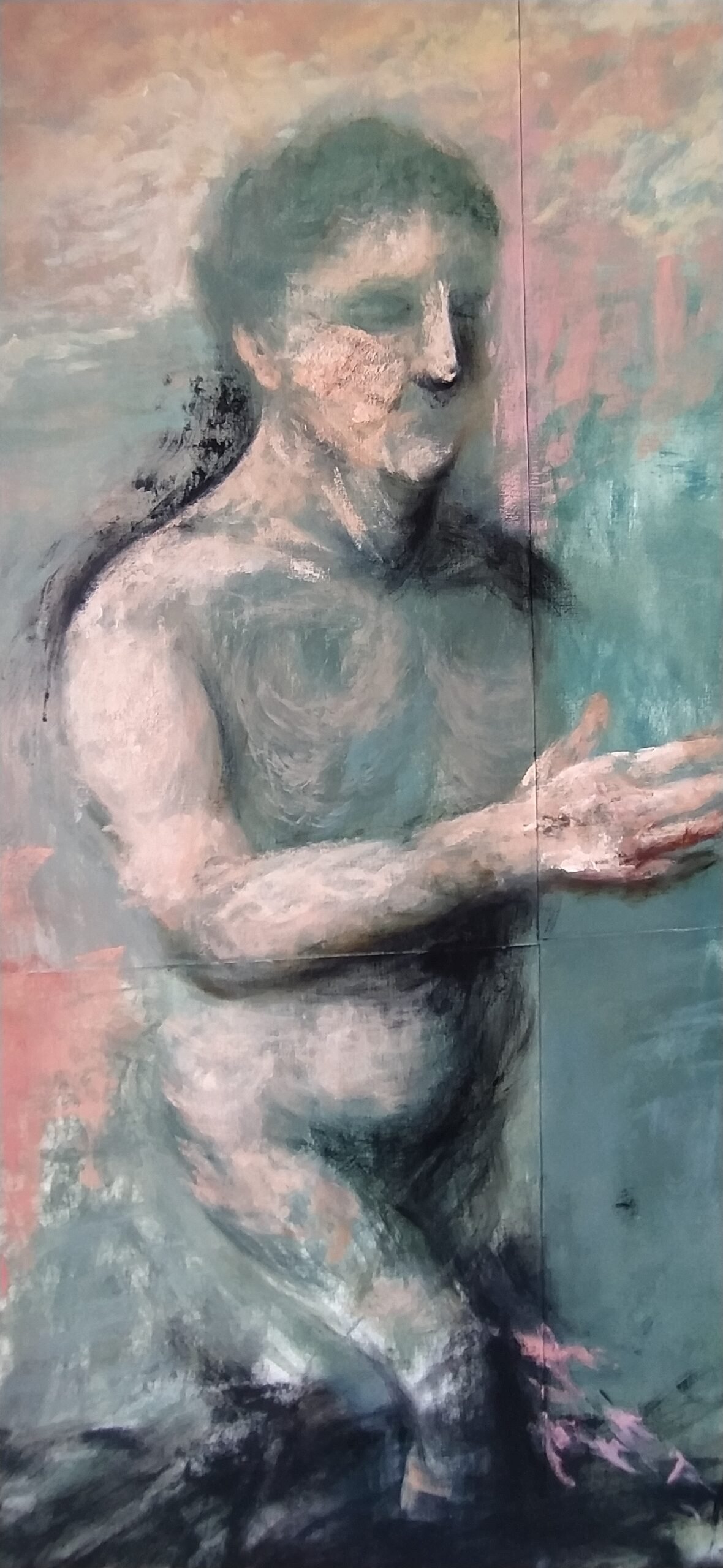 Se trata de una obra, que desde mi sentir, atraviesa el tiempo. Un telón, sobre el que se han ido depositando emociones maduradas...sombra y luz, dolor y ternura, agradecimiento a una figura redentora, Amor. Metamorfosis en pos de un sueño de vida. Lo humano, pero con aliento contemporáneo.Era mi obsesión, situar la obra en el Hoy...el movimiento, la tridimensionalidad, lograr que esos cuerpos emergieran y fueran tangibles. Una obra cargada de simbolismo, en mi proceso como artista.