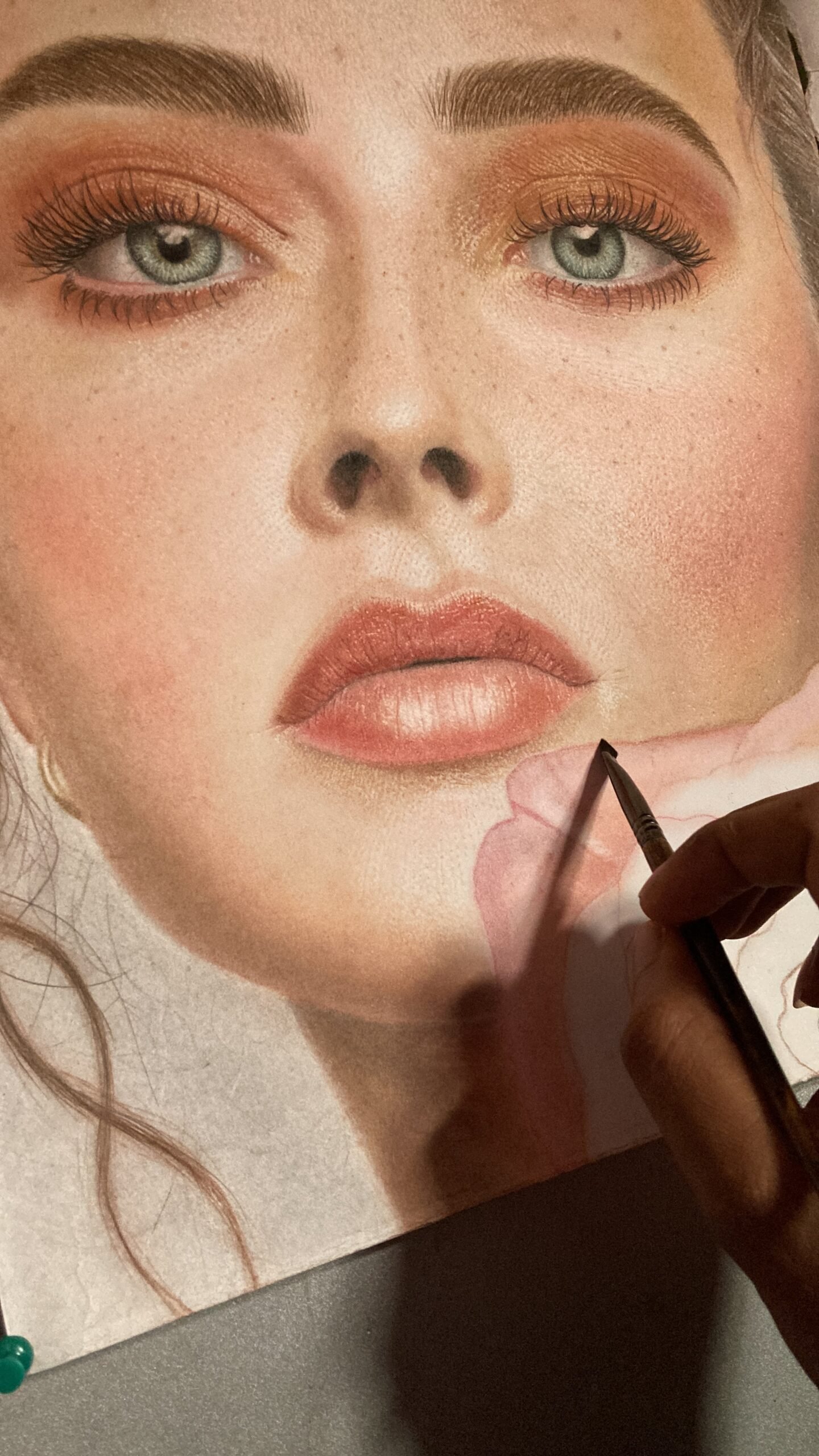 Ce tableau met en avant le lien entre la beauté, incarnée par les proportions harmonieuses et les traits fins du visage, et la féminité, symbolisée par la fleur rose placée sur celui-ci. Cette fleur évoque des qualités telles que l'amour, la fragilité, la passion et l'élégance. Ensemble, ces éléments rappellent la délicatesse et l'importance d'une attention particulière à la beauté, souvent convoitée, dans le but de la préserver. L'œuvre invite ainsi à réfléchir sur la manière dont ces deux concepts s'entrelacent et se nourrissent mutuellement, soulignant l'idée que la beauté et la féminité sont intrinsèquement liées dans une quête d'éternité et d'appréciation.