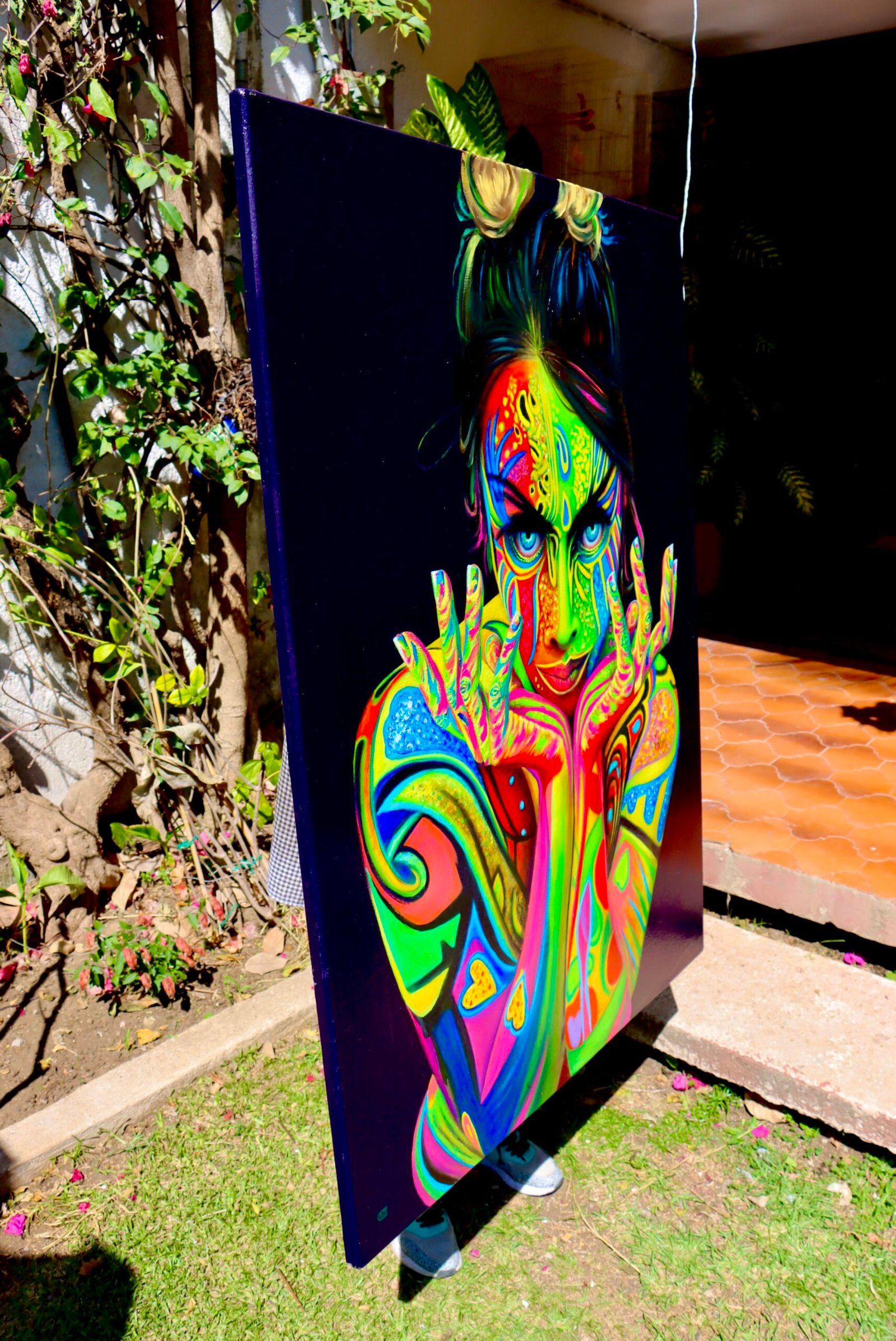 The original idea is from fellow artist (photographer and body-painter Jonaz Soriano. Cheng bought the photographic rights of Soriano and painted the body painted model, as real as possible. Cheng loved the bold and playful art of his fellow artist and wants to empower women through this artwork.