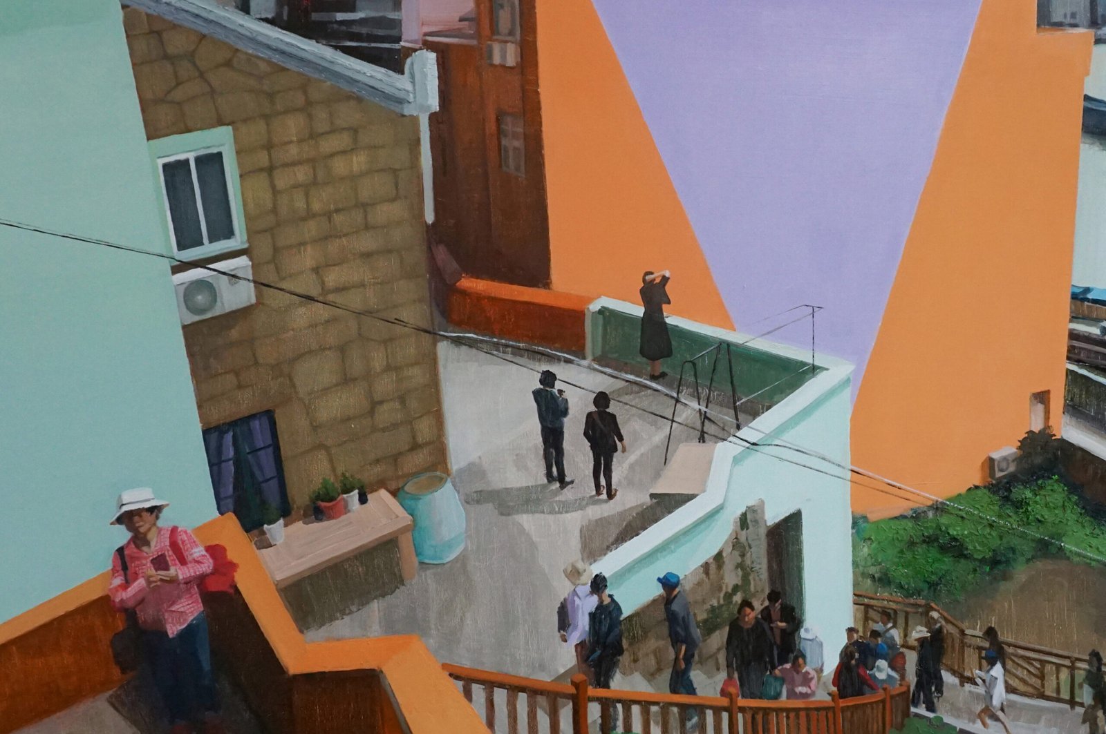 This painting is an interesting discussion of the concept of ‘home’. In this painting, I am showing a Chinese fishing village as a tourist and from a stranger's point of view, while many of the representative symbols of the fishing village that appear in the painting, such as walls, boats, and buildings, are also familiar elements of hometown for those coming from the coastal areas of China. For me, this painting is an observation and understanding of the landscape of a foreign land. However, when the work was exhibited, I received a number of viewers from the coastal areas of China, including the fishing village in the painting, who greatly resonated with the work and saw the warmth of home in it. As a stranger in a foreign land, my painting convey a sense of home. Meanwhile, have I ever felt ‘at home’ when I was in a foreign land? Where is home, or can any place we have temporarily lived become ‘home’?