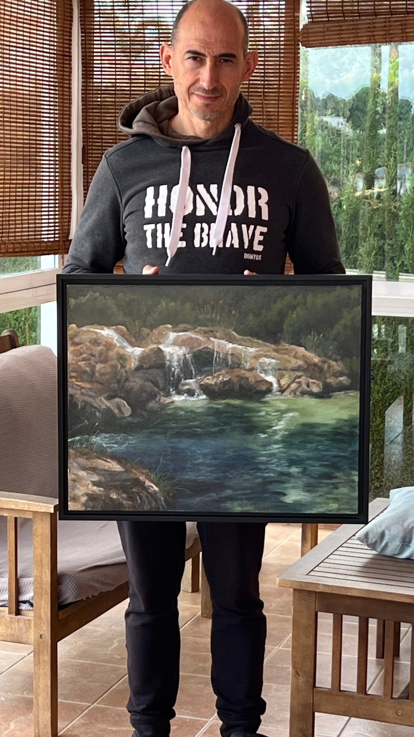 Oleo sobre madera tratada. La obra es un representación figurativa con pincelada muy suelta enfocando en las detalles mas importantes para dar una sensación de realismo. Tiene unas medidas de 58 x 45 centímetros.