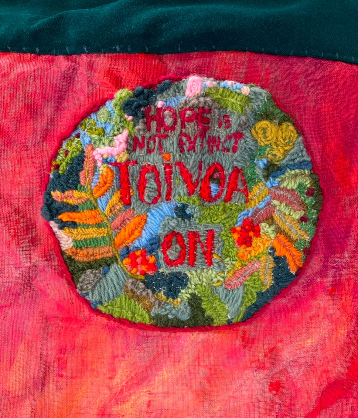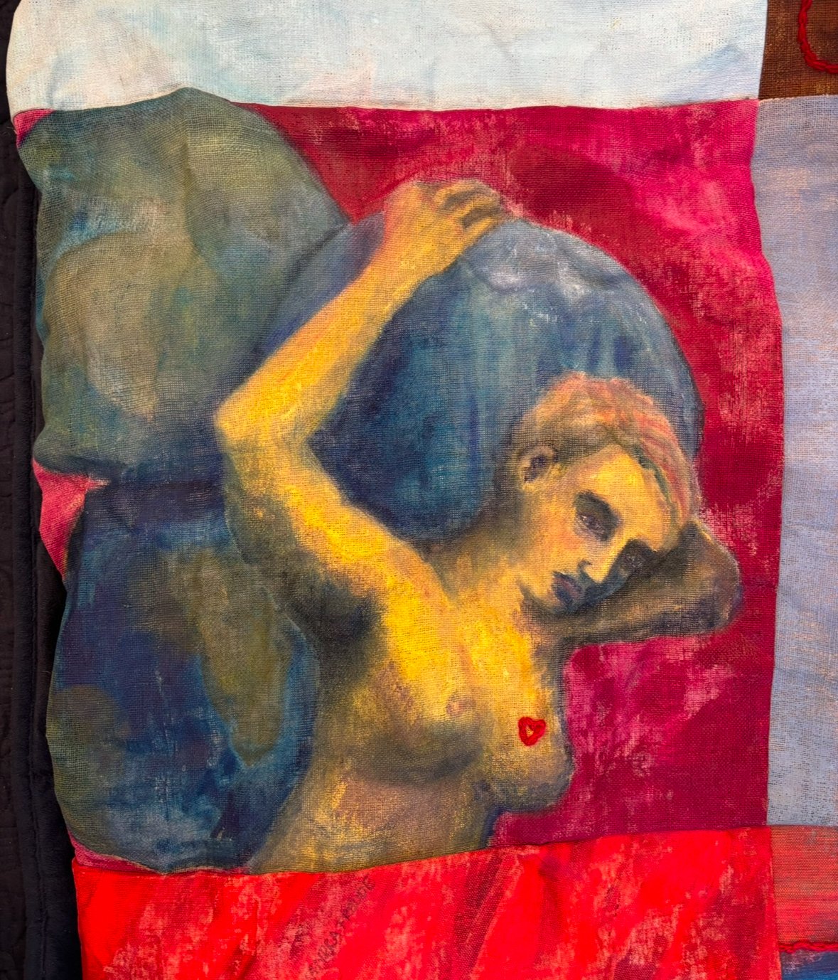 Technique: oil paint, acrylic, and embroidery on recycled fabrics