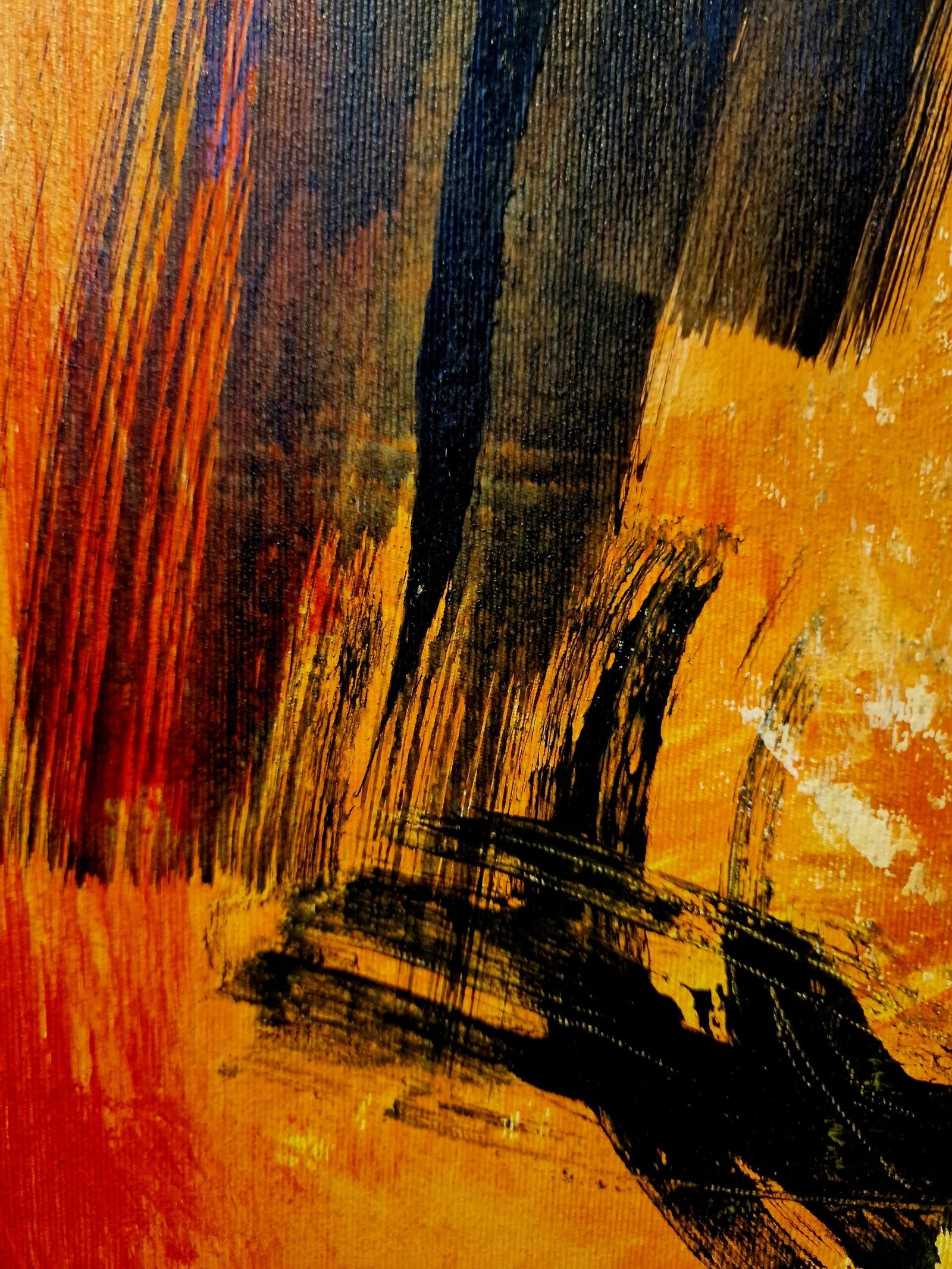 The artwork is part of the Abstract Theme. A work of strong contrasts where red and black engage in a dialogue, suggesting boundaries between light and shadow, passion and absence, joy and sadness, life and death. The piece presents a visual tension between two opposing worlds.
