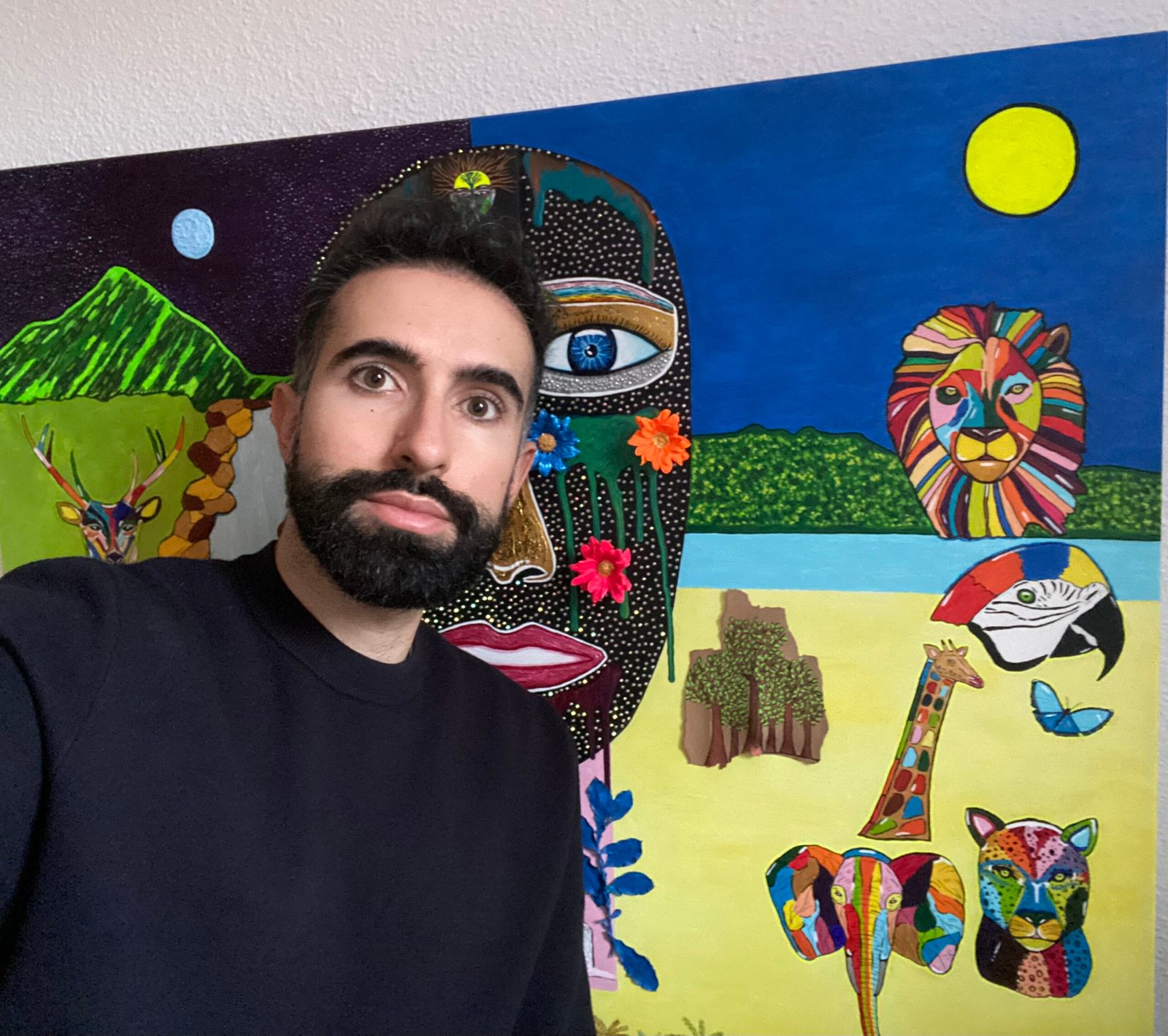 Presento mi obra titulada ''Conexión'' elaborada entre Octubre 2023 y Junio 2024. Esta obra ha sido un camino intenso desde sus inicios hasta su final, en ella he querido plasmar esa conexión entre lo humano y la naturaleza, entre lo terrenal y lo espiritual. Cada vez estamos más desconectados de nuestro origen, de la Madre Tierra. Nos aislamos en nuestras islas artificiales y al final se nos olvida conectar con nuestra verdadera esencia. ''Conexión'' quiere conectar con esa esencia que estamos perdiendo día a día e invita a un momento de paz y reflexión, sin olvidar que todo cambia dependiendo de la luz con la que se mire.