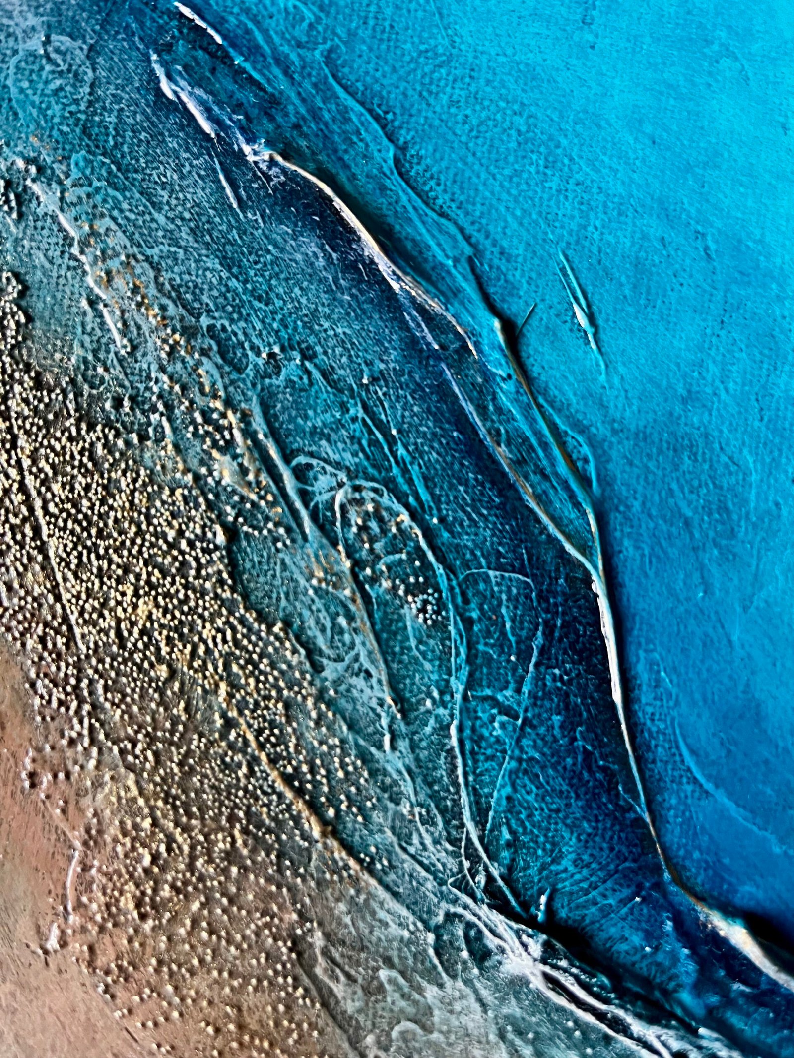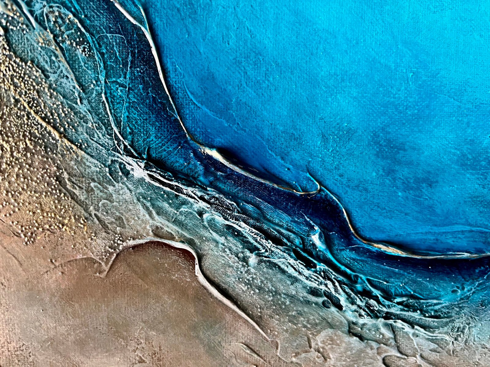 This artwork is a tribute to the beauty of our planet, with earthy colours meeting blues inspired by the ever-changing ocean. Various textures bring depth and add interest, allowing the viewer to always see something new, some new detail, some interesting spot - as it is in real life when witnessing the movement of nature.