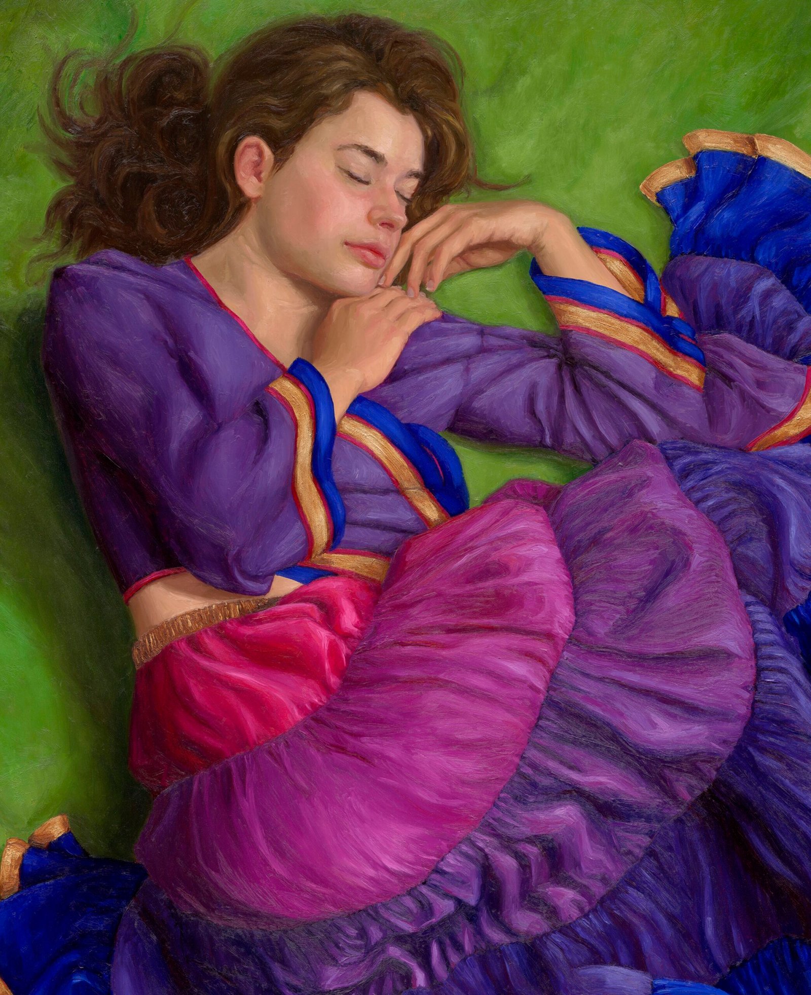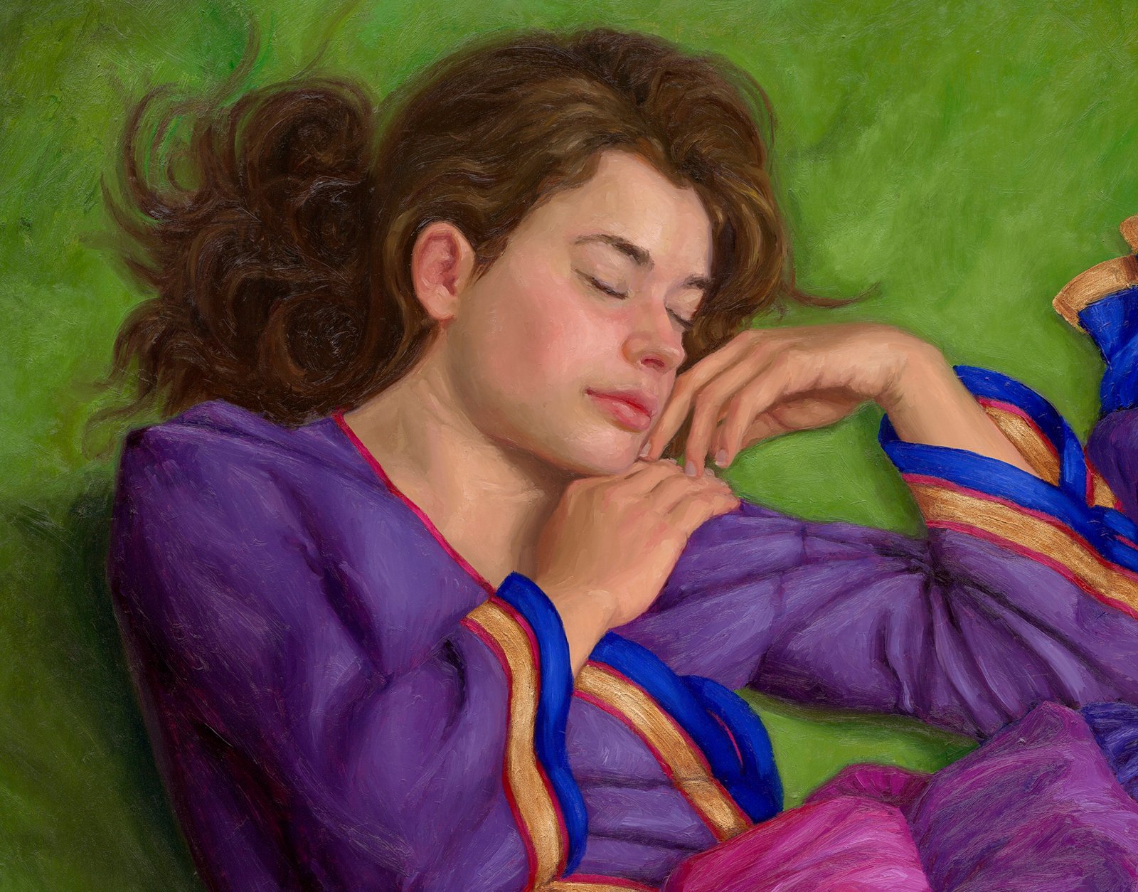 This is a painting g of my youngest daughter. She is a teenager and turning in to a young women, full of dreams and posibilities for her future. I love the way young people have so many choices to make with path their future take them. No limits, and a lot of dreams.