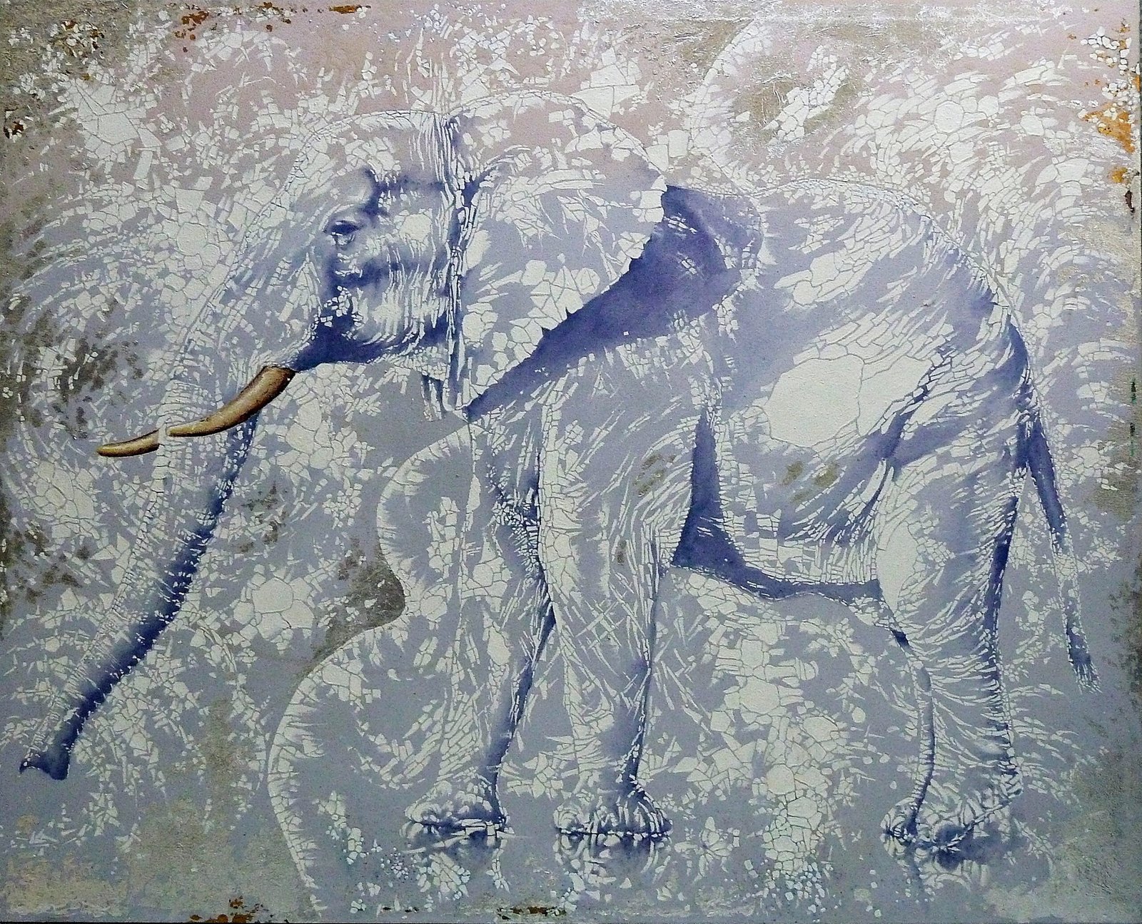 1-Elefante-Blanco162x130cm.acrlicopan-de-plata.Lienzo