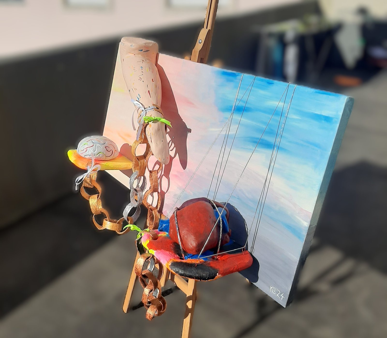 Human beings engage in an eternal struggle between the logical and emotional sides. However, when the emotional side is overwhelmed by pain, it retreats into the dark side of that pain and becomes afraid to leave. On the other hand, the logical side emerges with the intent to suppress this fear and the fragility of a heart stunned by pain. As time goes by, the human being realizes that sometimes the emotional side needs help to overcome the damage caused by others. Along this journey, the scars left by life may not disappear, but they can be colored, giving them a new meaning. With this new perspective, the emotional side learns that not all pain lasts forever and that there are risks worth taking. To face a new chapter, it takes courage to step out of the darkness and see the light again.
