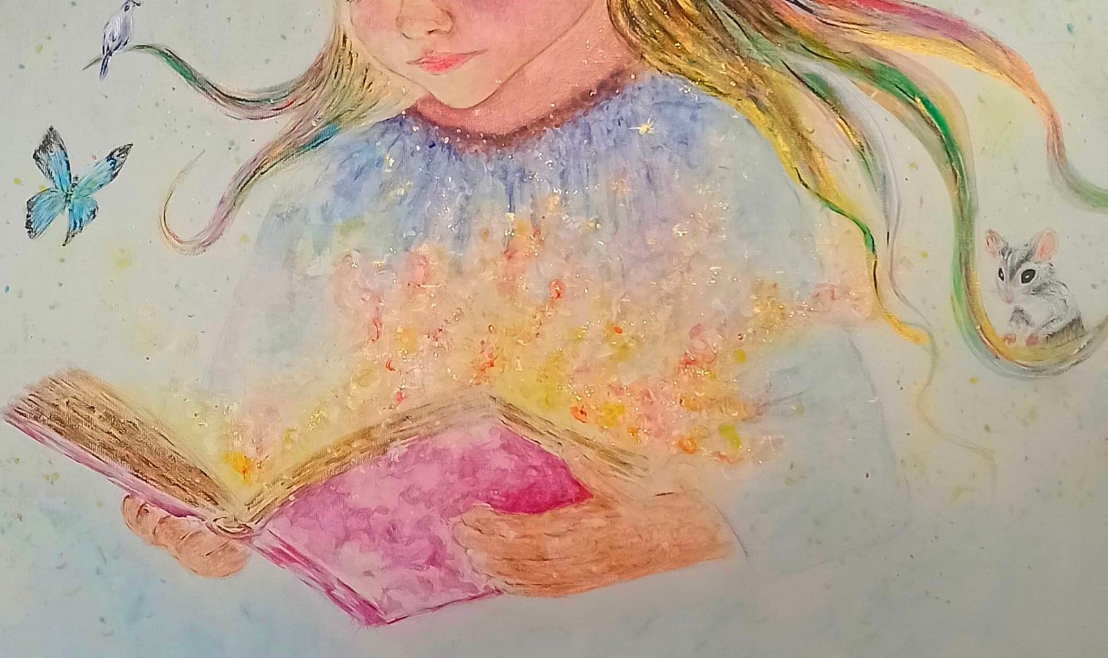 La obra representa una niña inmersa en la magia de un cuento de fantasía.
