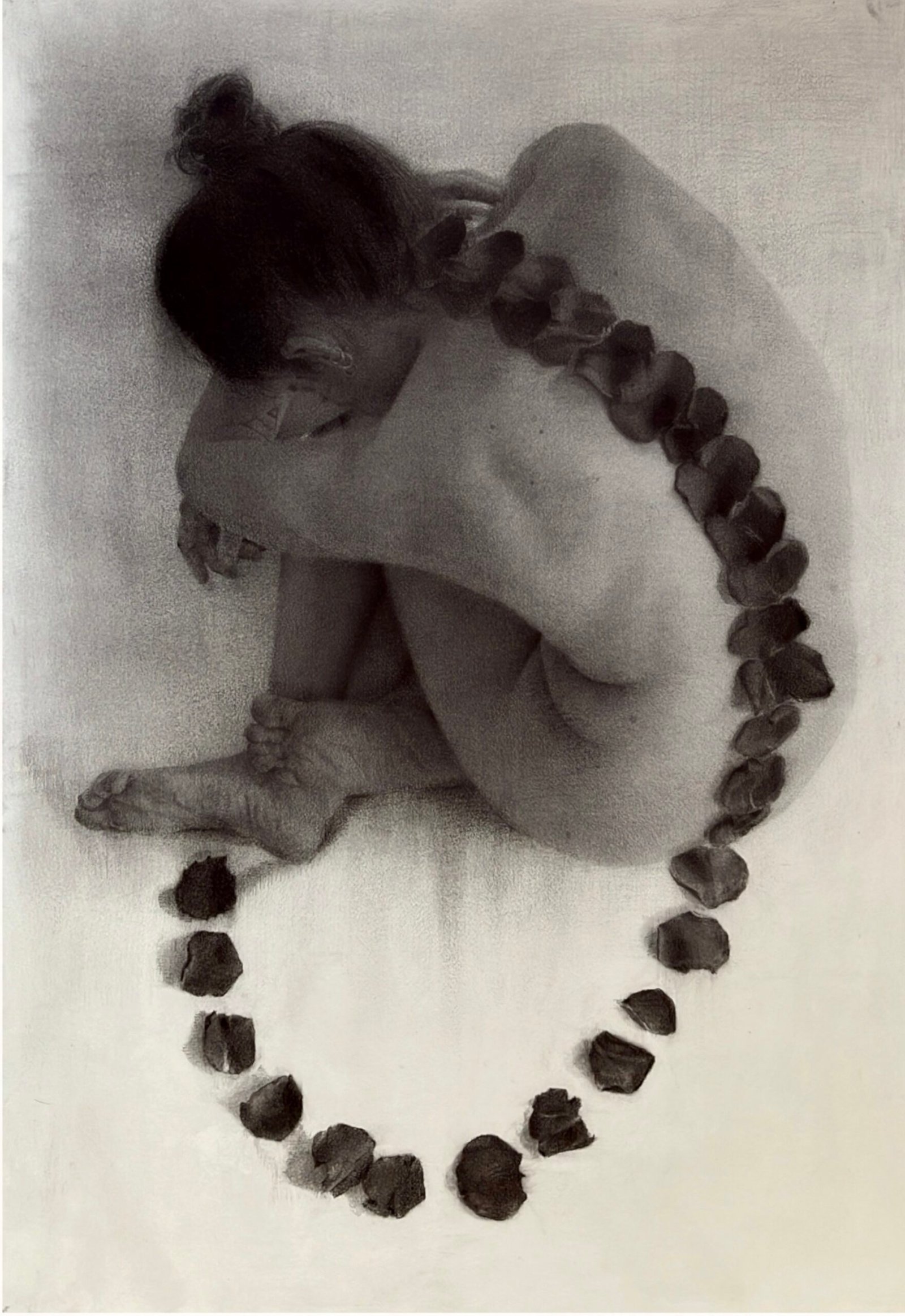 La obra "espiral" forma parte de una serie que representa la unión de la vida humana con la naturaleza.