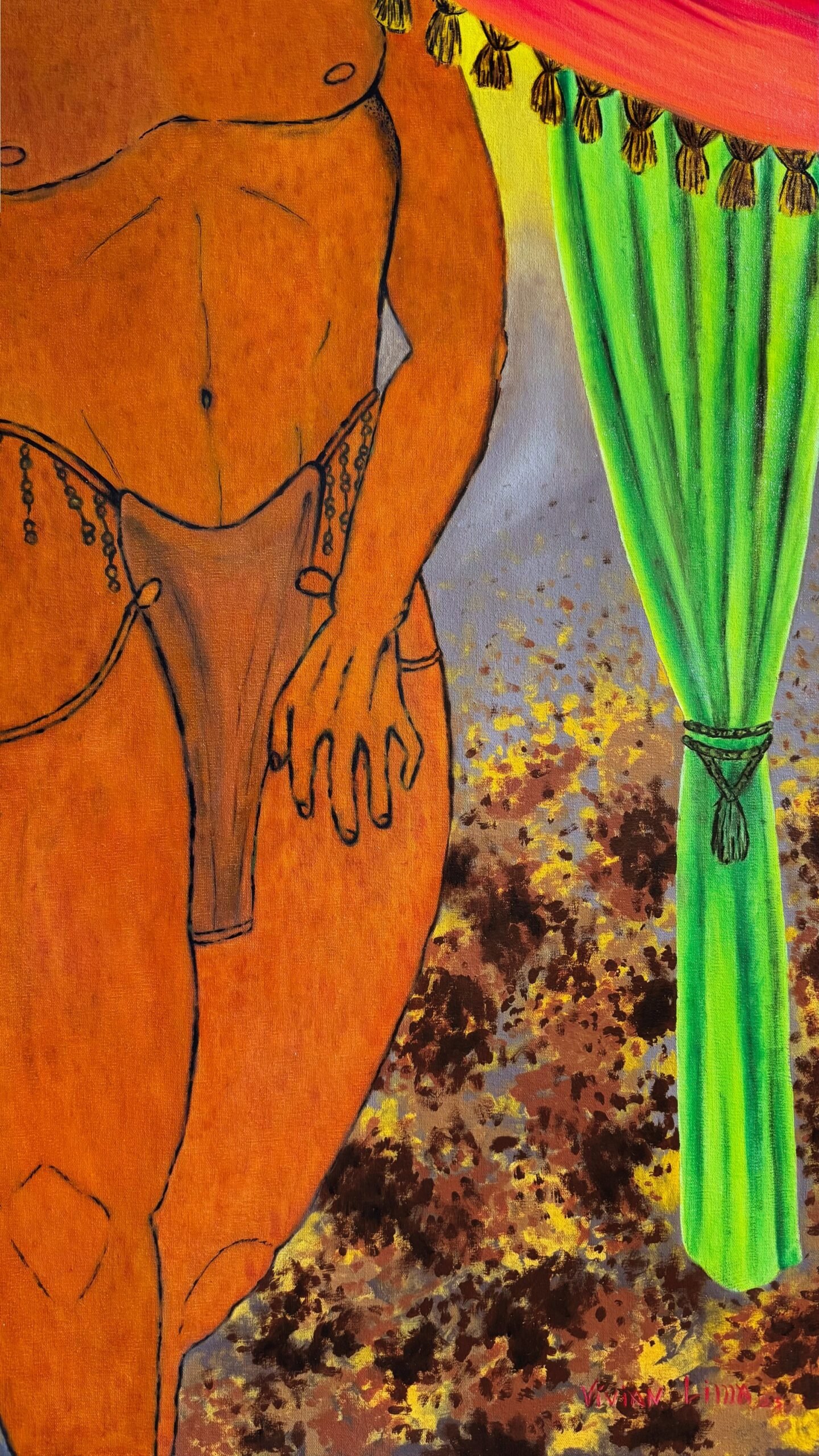 A young man from an African tribe walks up to a large, richly decorated tent. He wears a white loincloth adorned with golden chains, the typical attire of servants and dancers. His superior, who is the sovereign king of the region, has called for someone. With a curious, loyal, and servile expression, it is Idris who appears at the entrance.