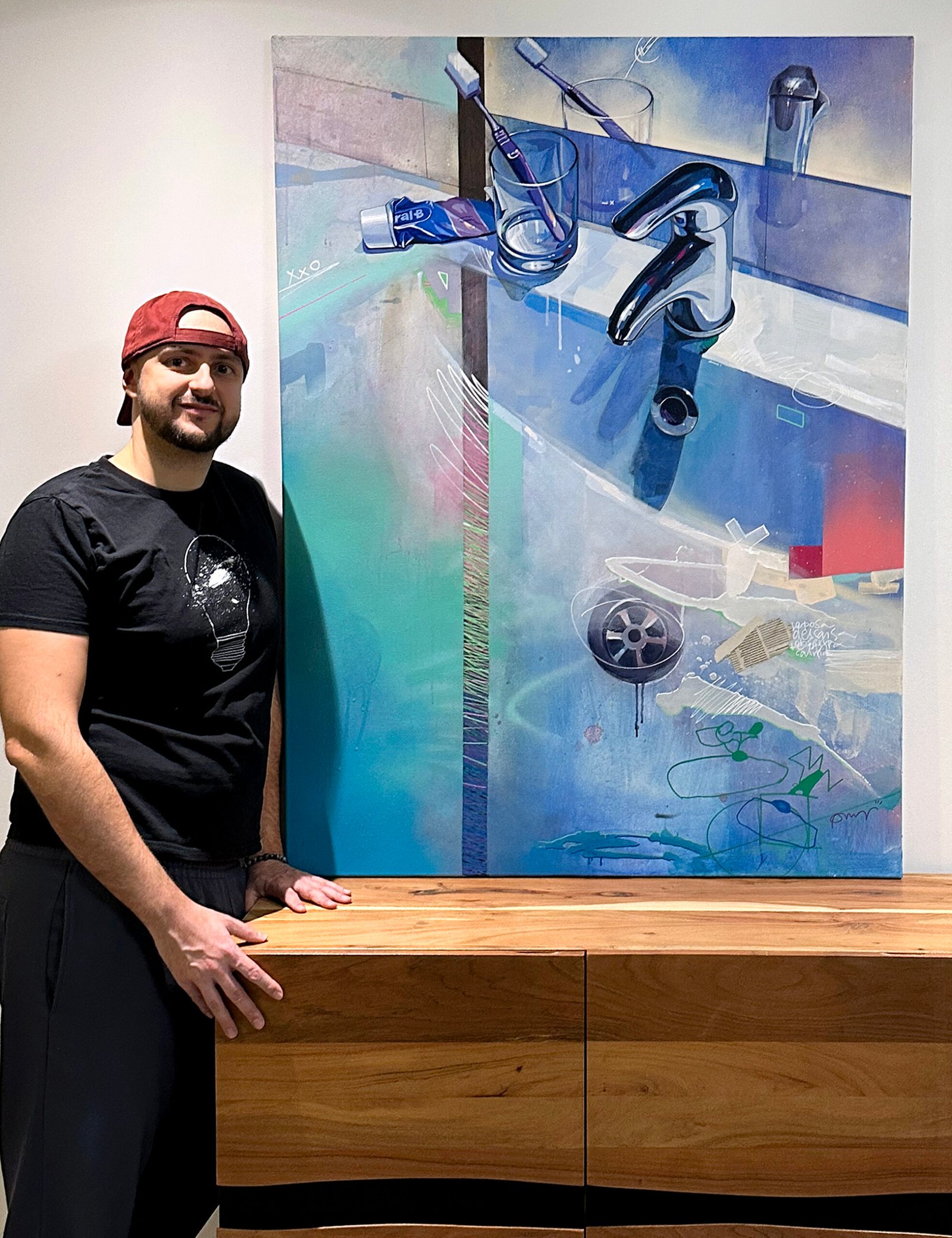 Es un espacio íntimo, donde cada persona pasa un tiempo de su vida, frente al espejo, en el lavabo, en el desagüe, repasando muchas veces, o pocas, pensamientos. Técnicamente, es una obra realizada en acrílico con colores principalmente fríos. Posteriormente, se le han añadido aguadas de acrílico y sprays, para finalmente terminar la obra con rotuladores y collage.