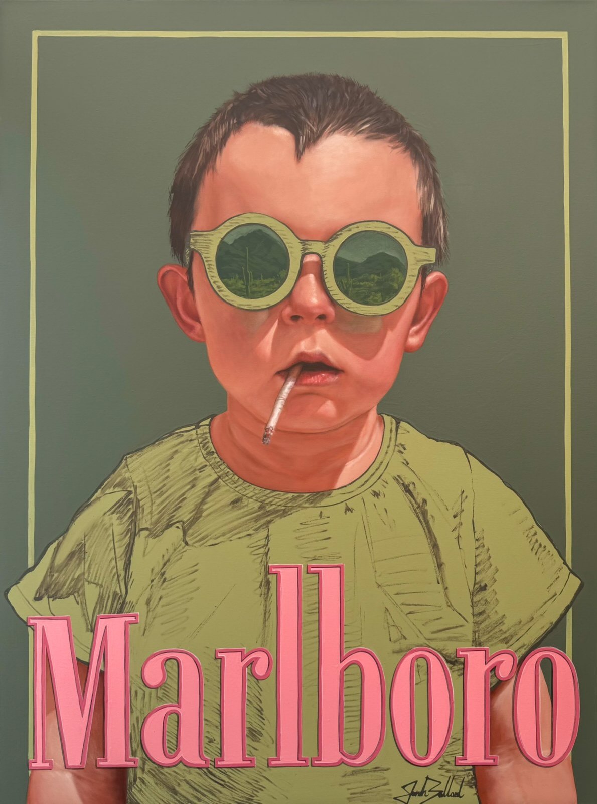 The painting Jude's Marlboro is a work whose full meaning I have yet to fully understand. It may represent our childlike state, symbolizing a longing for the innocence of youth. In this innocence, we are perhaps better able to see our true potential, unclouded by external doubts and distractions.