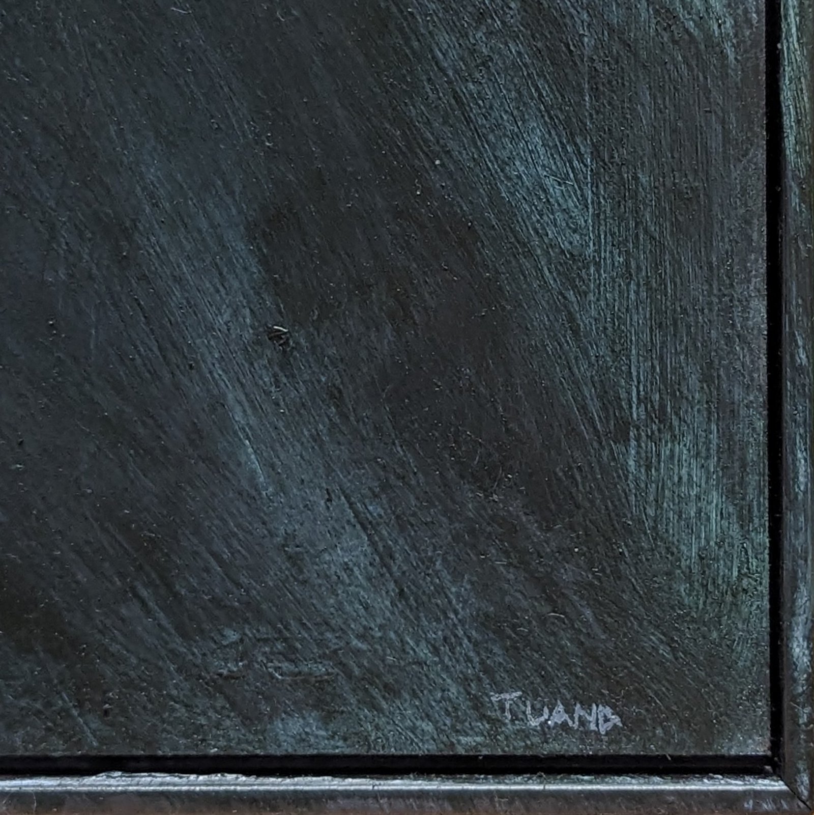 La Morte portrays the final moment of life, with a human figure shrouded behind a veil. This painting marks the end of Tuand's blue period, where deep blue hues symbolized sadness and introspection. In this piece, the blue appears worn and faded, mirroring the conclusion of this artistic phase. The veil, once prominent in his work, blends into the background, gradually disappearing into the surrounding darkness. A dim but brilliant light punctuates the scene, offering a glimmer of hope in the face of inevitable finality. Created during his last months in New York, La Morte symbolizes multiple closures: the end of Tuand’s time in the city, the conclusion of his blue period, and his personal transformation. This evocative work invites viewers to reflect on the universality of life, death, and renewal.