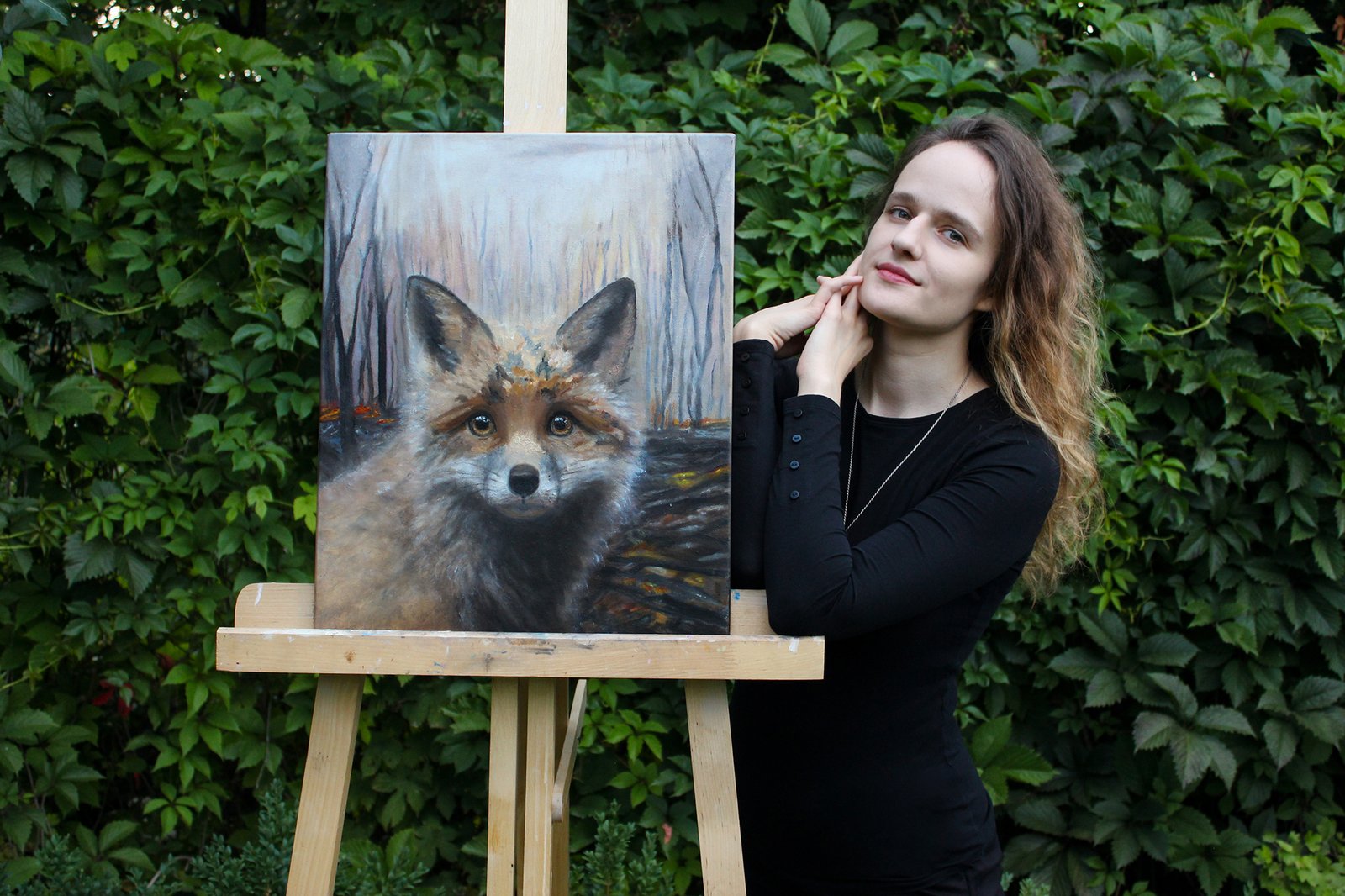 In the painting, the emphasis is not on the precision of realism but on the depth of emotion. The unfinished details are an intentional artistic device, designed to shift focus away from minor elements and instead immerse the viewer in the atmosphere, capturing the essence of the narrative. The devastated forest is depicted as an emotional backdrop to the tragedy. This abstraction enhances perception, inviting the viewer to fill in the details through their imagination. The dark, charred ground serves not so much as a setting but as a reflection of the protagonist’s inner state. This approach to the artwork forms an artistic statement: the painting does not aim for external perfection but operates on the level of symbols and emotions, urging the viewer to feel rather than merely observe. The absence of intricate detail becomes a crucial element of the composition, drawing attention to the central focus—the fox cub’s gaze and the story it conveys.