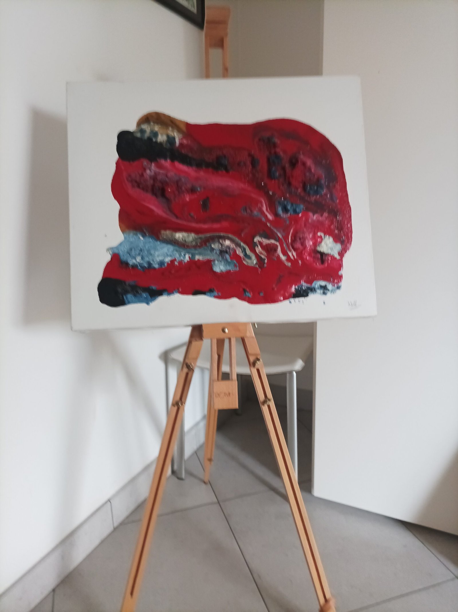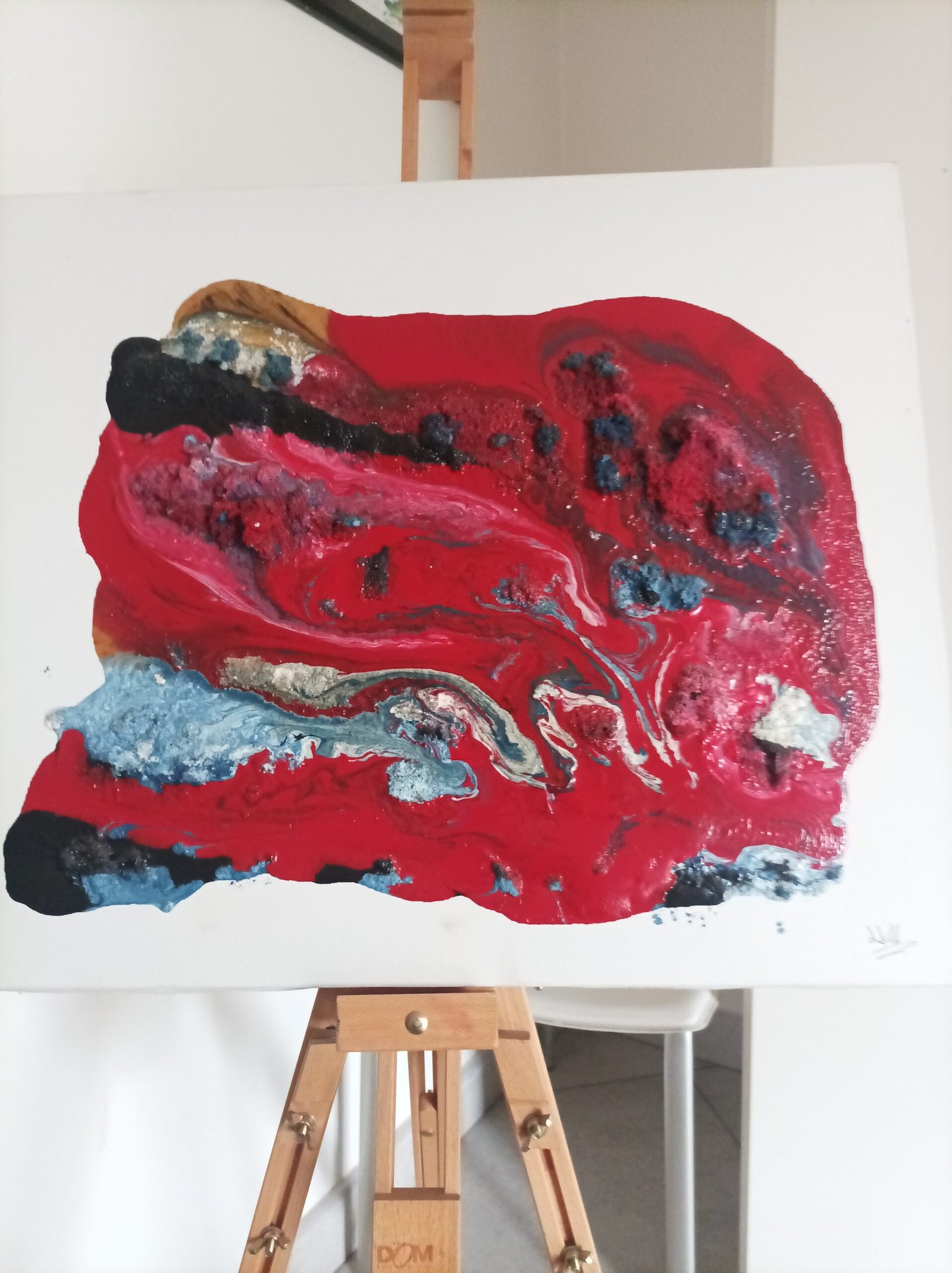 L'opera rappresenta un' eruzione vulcanica, rappresenta il Magma che cadendo nel mare si raffredda e produce materia. L'opera è realizzata con smalto su tela e segatura e vernice da esterno e vuole rappresentare la forza della natura e degli elementi che produce materia.
