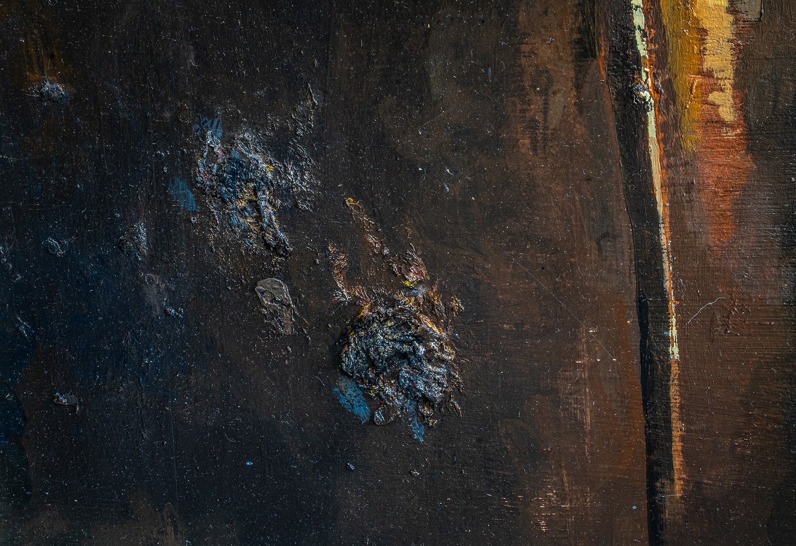 This piece is based on a reference created by overlaying two photographs, aiming to generate a sense of movement. Through the constant correction of errors.