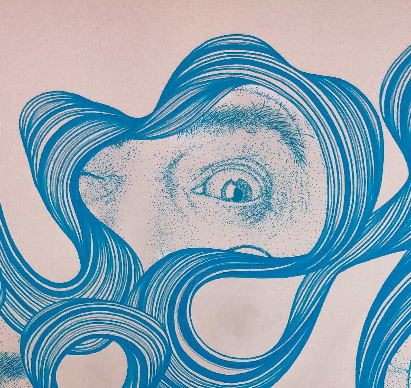 Una mirada no puede esconder ni mentir, incluso dentro de esta red de líneas que componen la composición. En la sonrisa de los ojos reside la sinceridad de la sonrisa de los labios. La idea detrás de esta colección es un retrato de la verdad en la mirada. Esta pieza en particular retrata las miradas de Salvador Dalí y su genio creativo, sus miradas que para mí representan el mundo particular y peculiar que él veía, representado por estas icónicas expresiones. Esta obra forma parte de una nueva colección donde finalmente encontré el "matrimonio perfecto" entre el puntillismo y las líneas, dos técnicas que más amo.