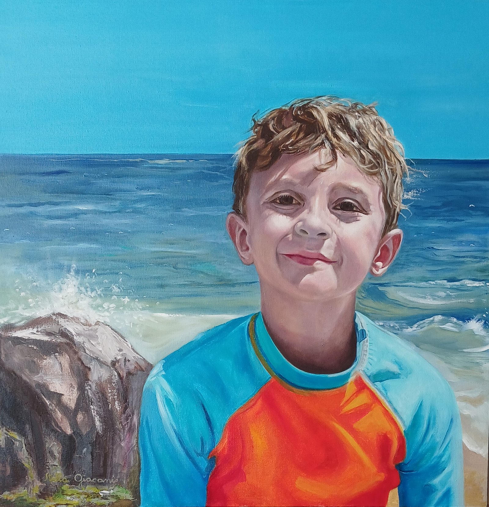 Refleja la frescura, candidez y picardía propia de su edad. El concepto es mostrarlo en un ambiente que acompaña su personalidad intrépida y alegre. La luz intenta intensificar ése concepto.