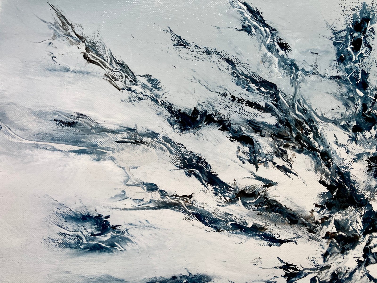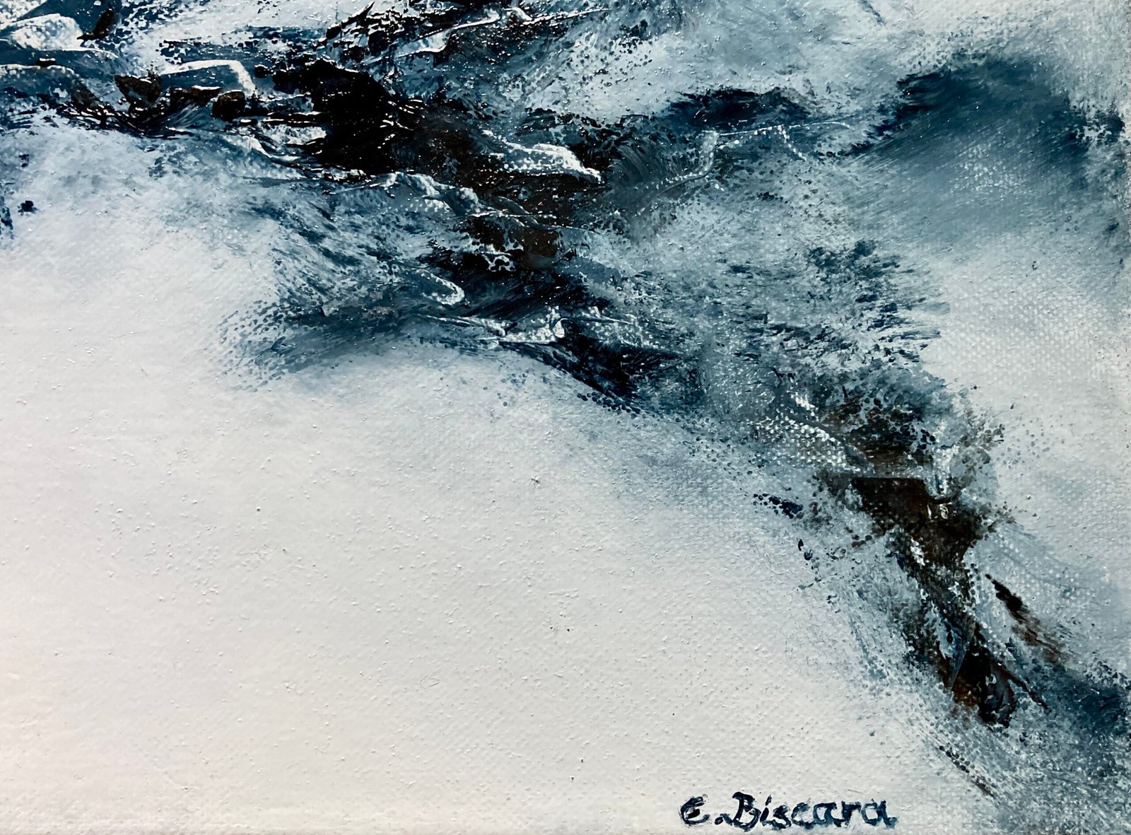 Sur un fond clair et lumineux., j'ai travaillé au couteau, alternant épaisseur et grattage de façon très spontané. J'ai recherché le mouvement, l'élan, comme pour transporter l'émotion, l'euphorie, l'allégresse.