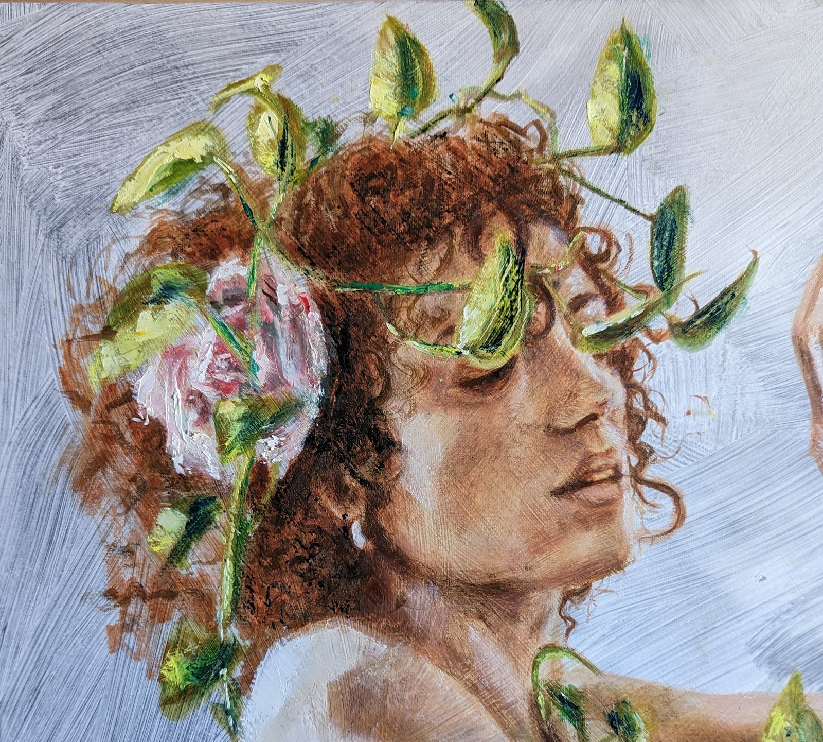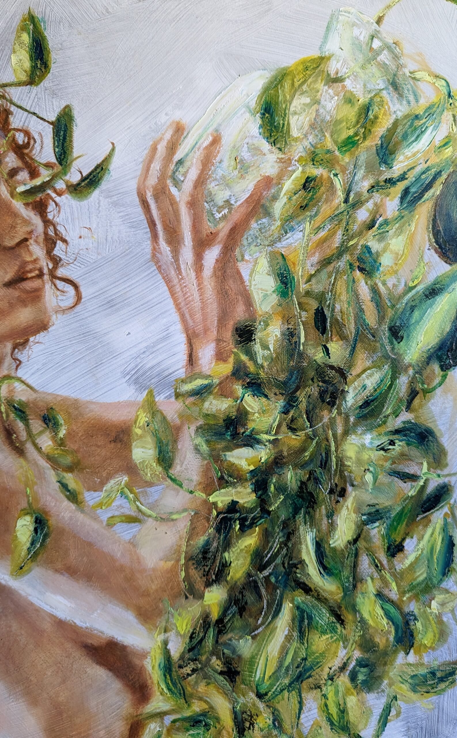 Ninfa con Etere marks a pivotal shift in Tuand's artistic journey, created during his final months in New York. In contrast to the introspective and somber tones of his blue period, this painting radiates tranquility and lightness. The nymph, depicted bathing in ether, symbolizes a cleansing of negativity, embodying self-assurance and serenity. Tuand’s intention with this piece is to invite the viewer to let go of daily pressures, offering a moment of calm. The work asks nothing of its audience but to relax, much like the nymph, who purifies herself in peaceful solitude. The bright, airy colors reflect Tuand’s own emotional release, a departure from the darker emotions of his earlier work