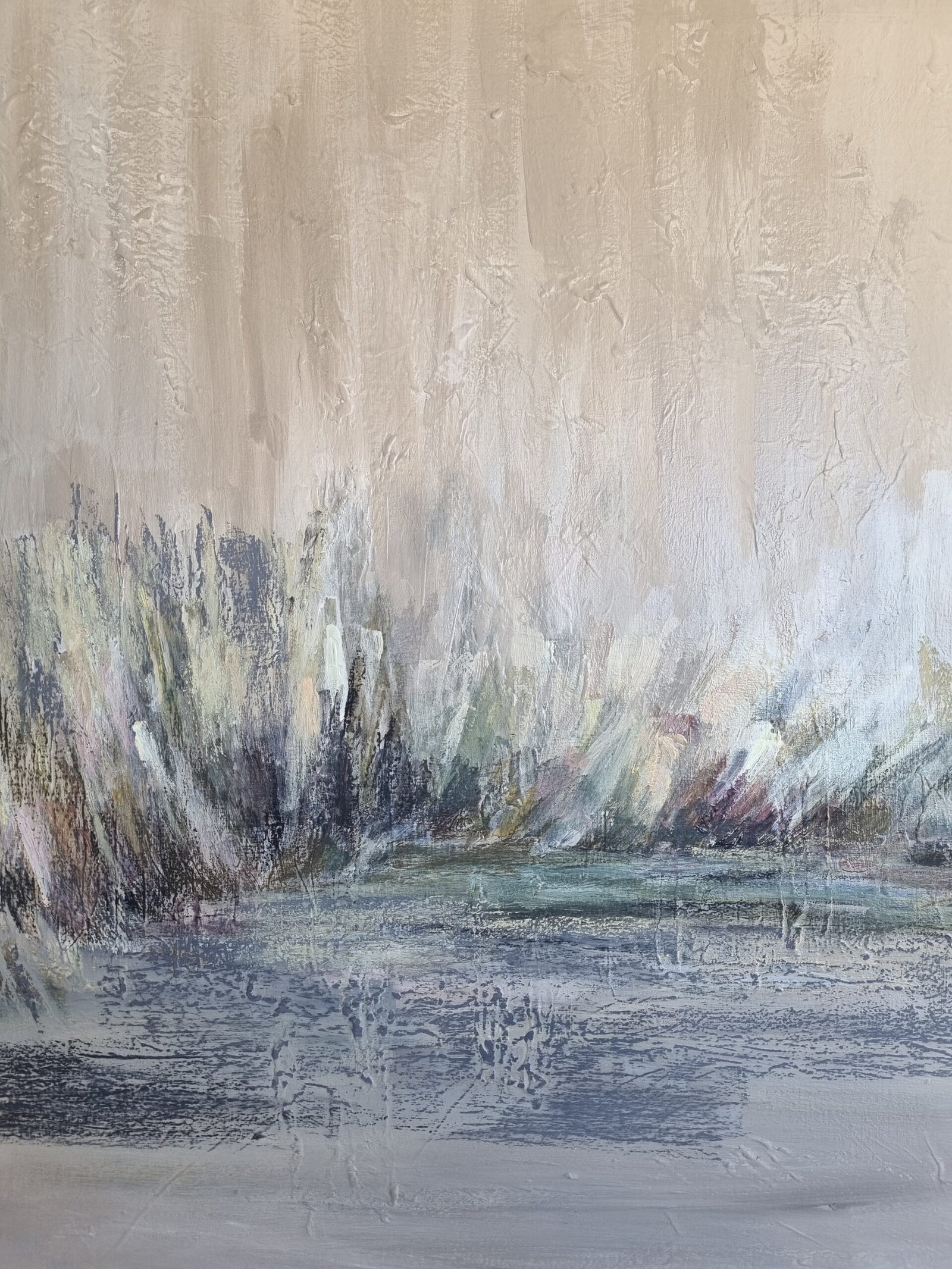 Esta obra pertenece a una serie en la que la artista estudia y analiza sensiblemente el ambiente natural de su entorno, aquel que la conforma y da vida, el pastizal pampeano argentino. Es una mirada desde el interior de la provincia hacia su tierra natal.