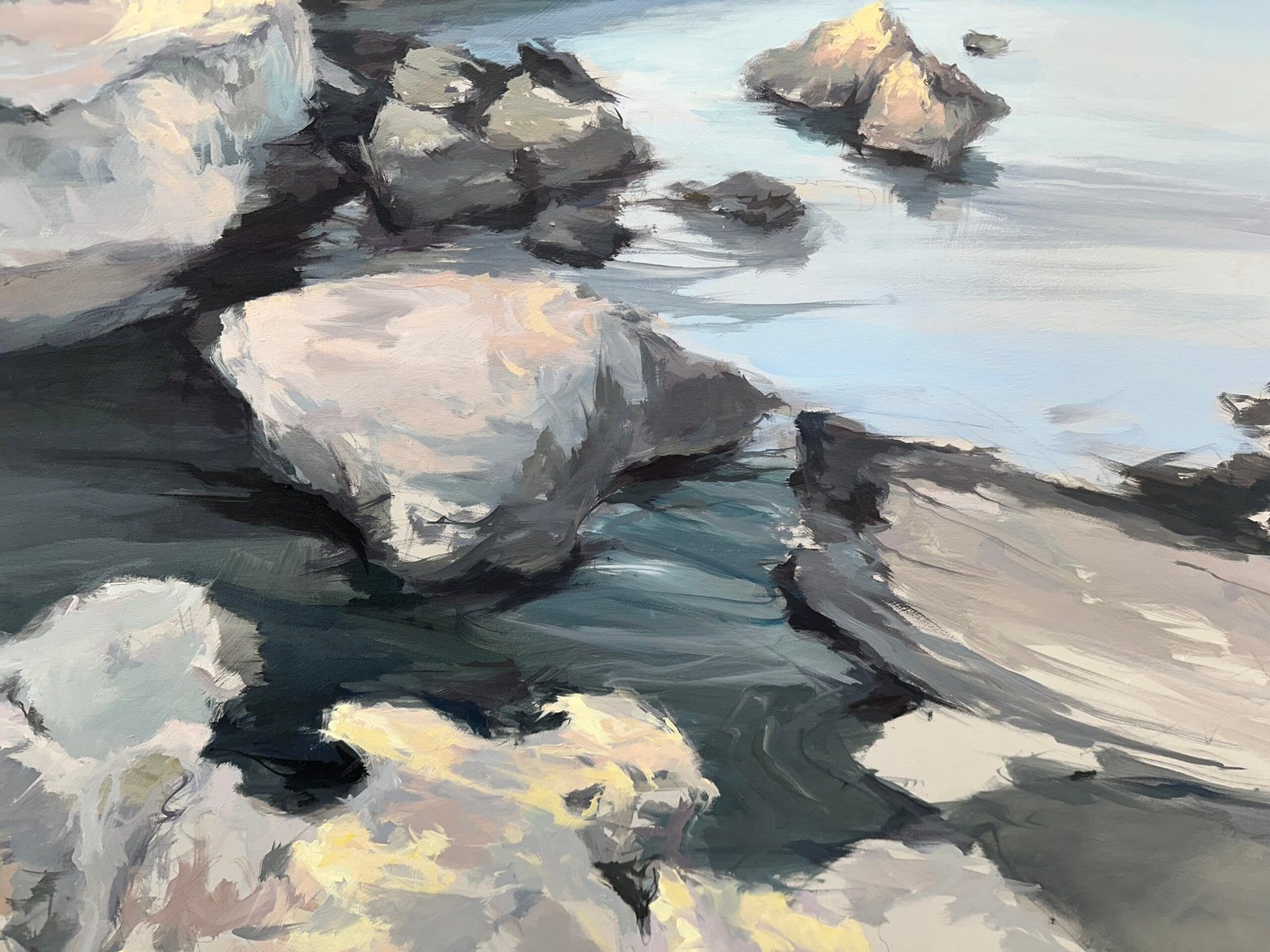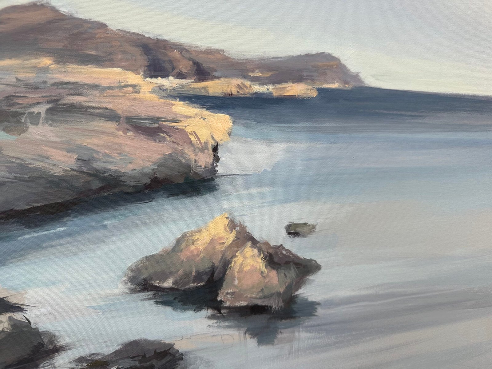 Y cuando miramos a un lugar de forma instrospectiva lo hacemos tan partícipe en nuestro modo de vivir , que podemos seguir respirando aquel entorno de ensueño y preciso momento a lo largo de los años. Inmortalizar, exteriorizando lo que hemos sentido. Siendo conscientes del paso del tiempo , la erosión irrevocable de la propia naturaleza que la hace cambiante en cada instante. Reflejo a través de una ventana ,de mi propia realidad en una obra.