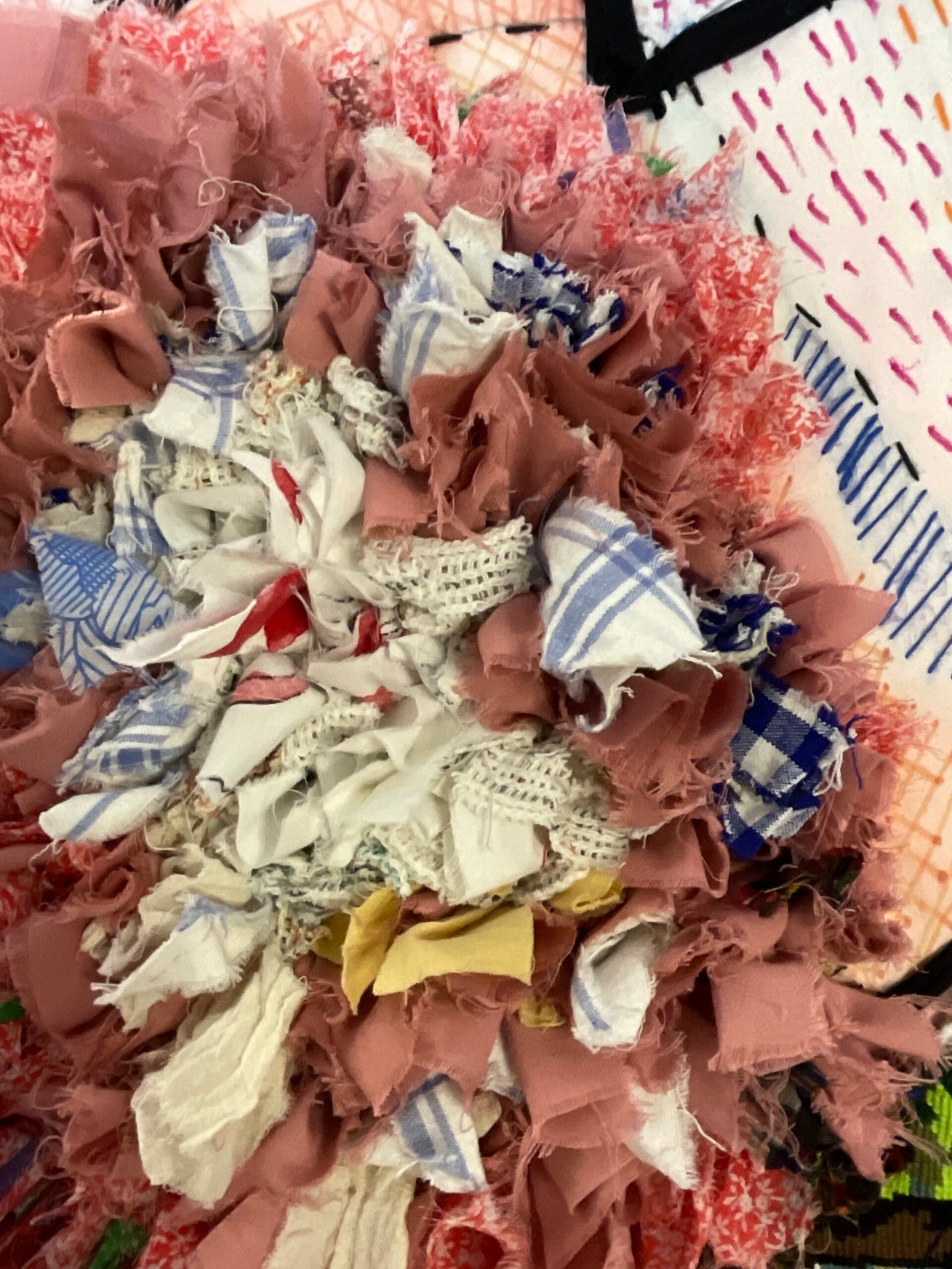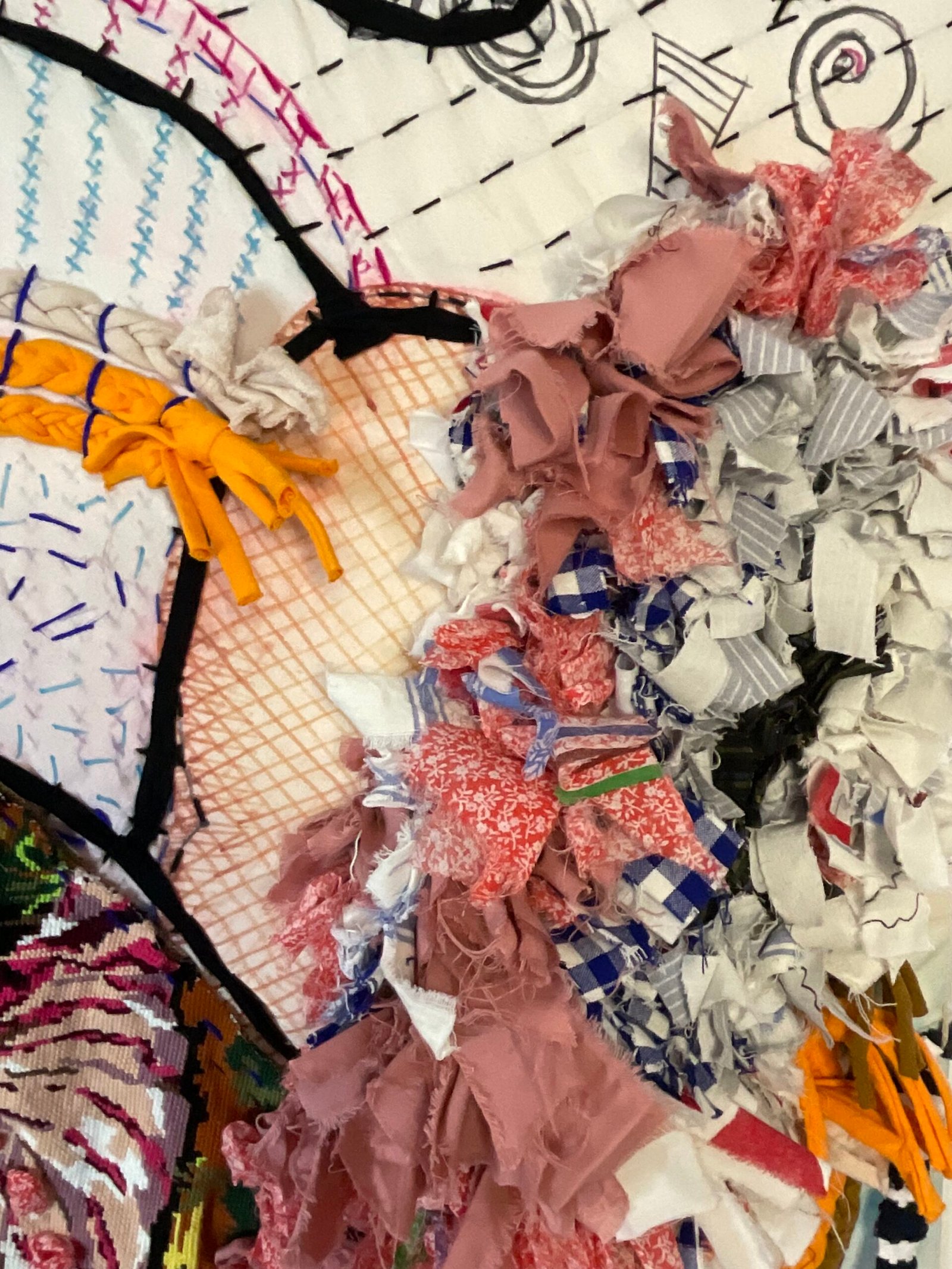 Technique: Tufted Recycled Fabric, Permanent Marker, Embroidery & Patchwork