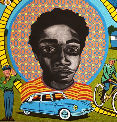 Technique: Acrylic paint, compressed charcoal, lacquer