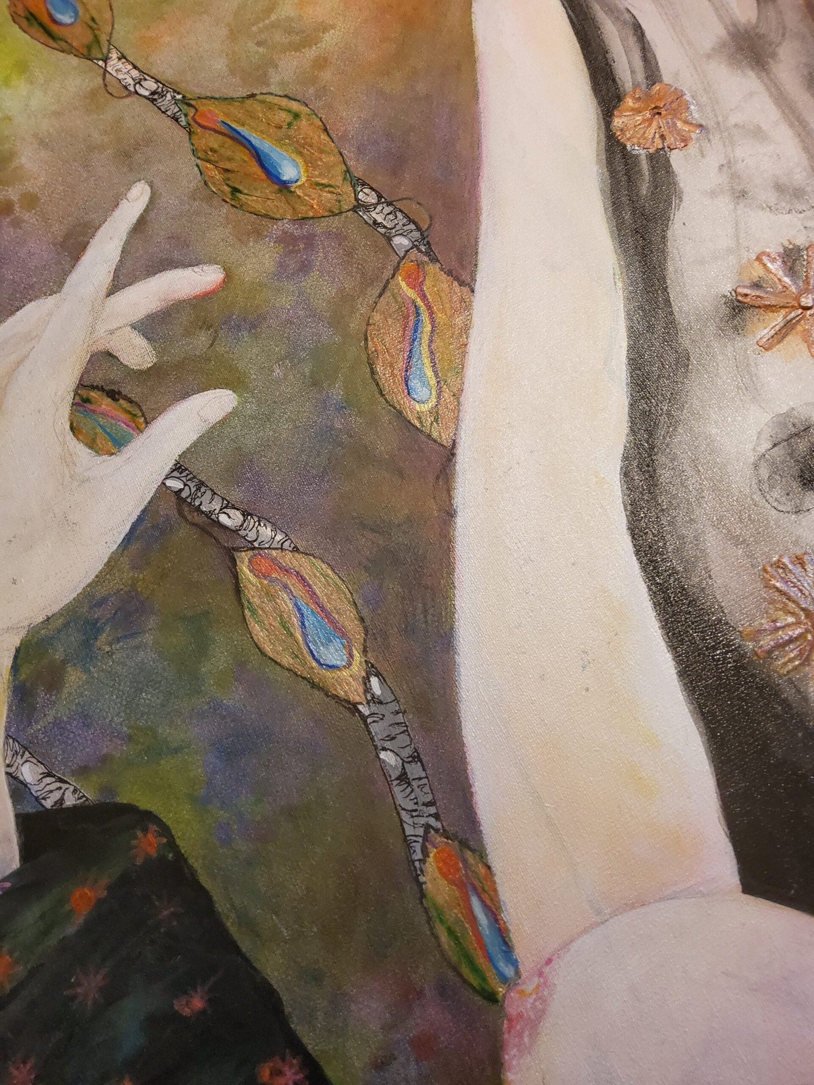 Technique: acrylique sur toile + collage de papiers divers