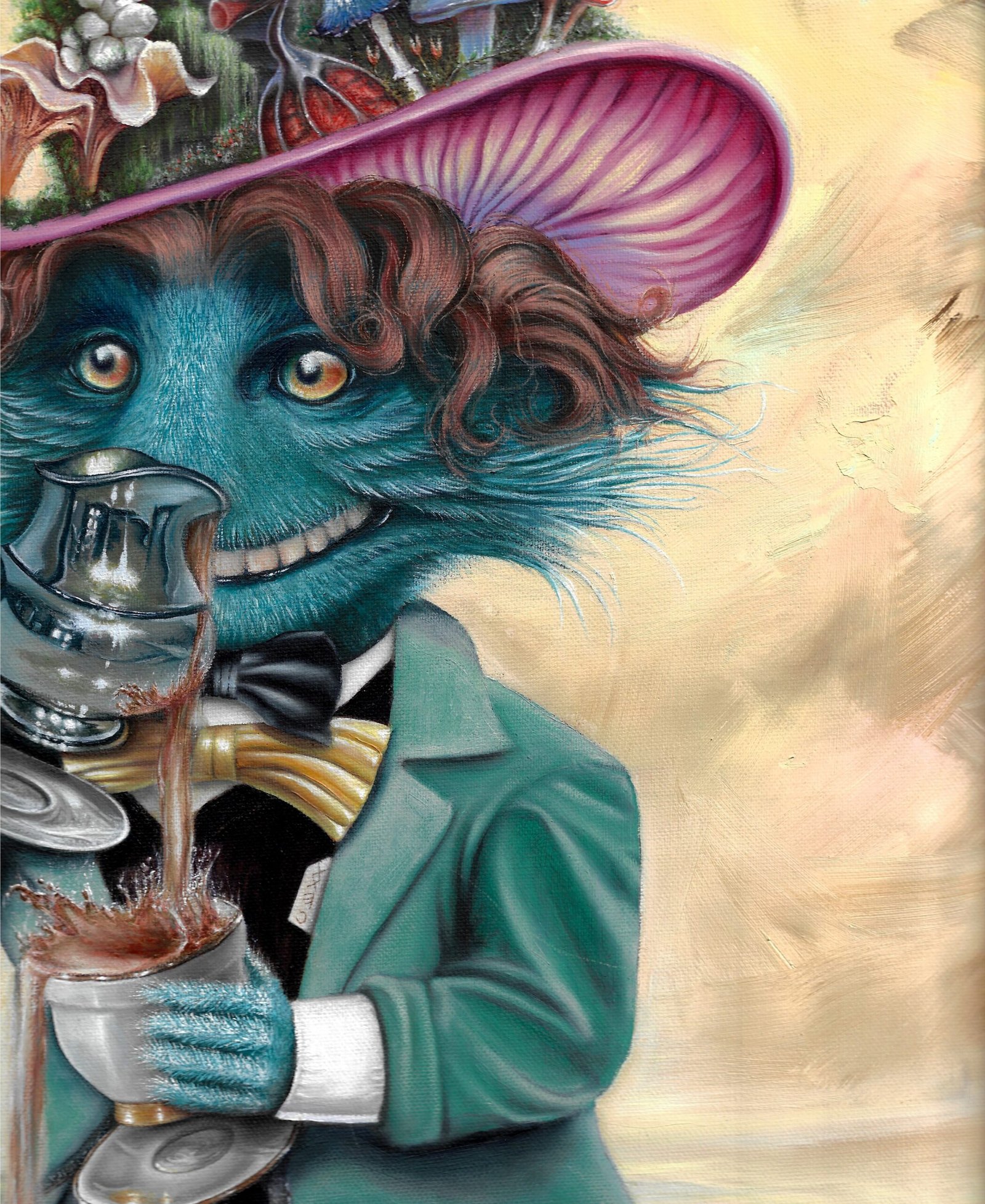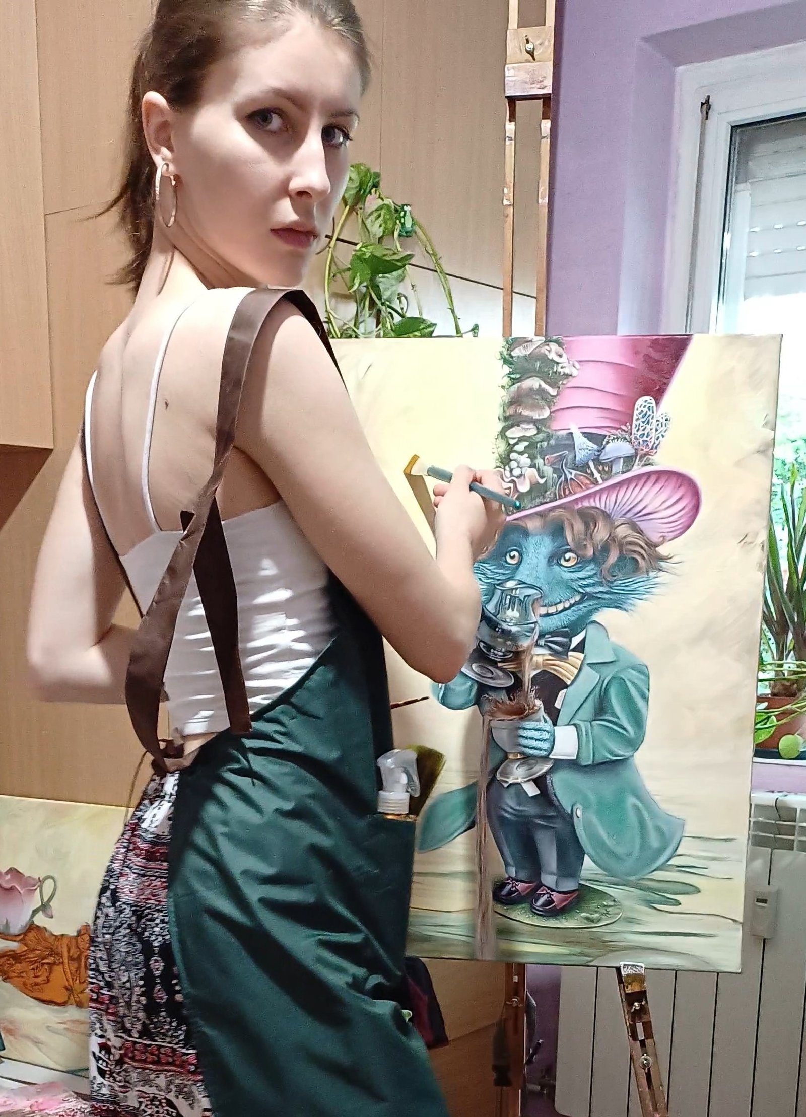 The painting portrays the character of the Mad Hatter from the famous story of Alice in Wonderland, incorporating numerous symbolic elements. I envisioned his appearance to align not only with his character but also to subtly reference myself (as hinted by the title, where the "H" may allude to my name). Behind his smile, there are many feelings and unspoken words hidden. In addition, this painting marks the inception of a new series, where the Wonderland theme symbolizes an escape from reality.
