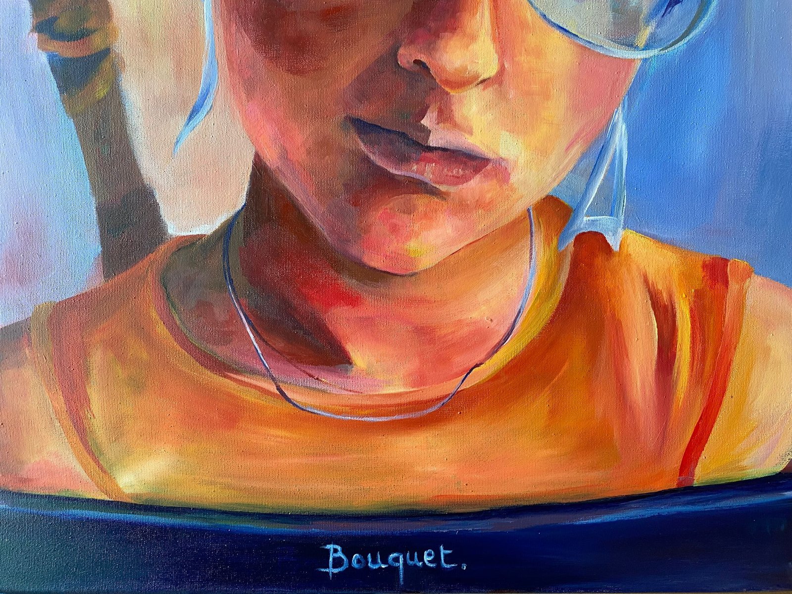 This work illustrates a warrior that we watch through a TV set, but who is also watching us. Is she in the TV or are we in the TV? At the same time, this work also looks at representations on television. The way in which television represents who we are but also shapes us. With this warrior, I wanted to show what I'd like to see more of on TV: women warriors.