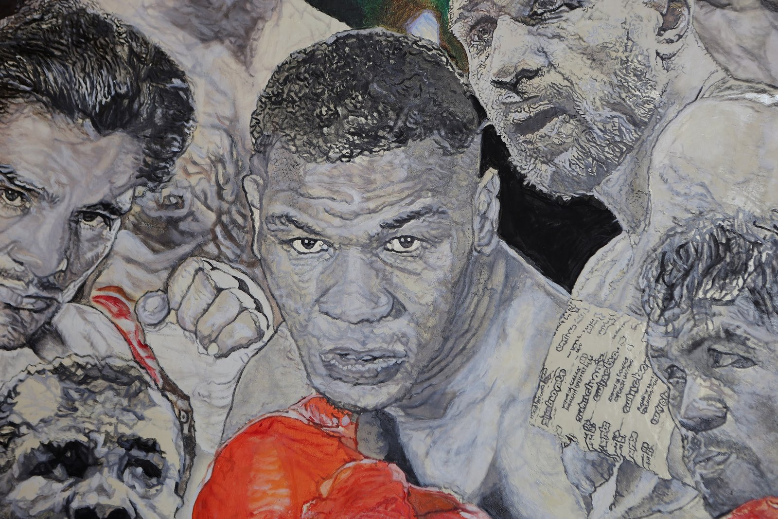 J'ai réuni dans ce tableau, peinture à l'huile, 11 grands champions de boxe anglaise