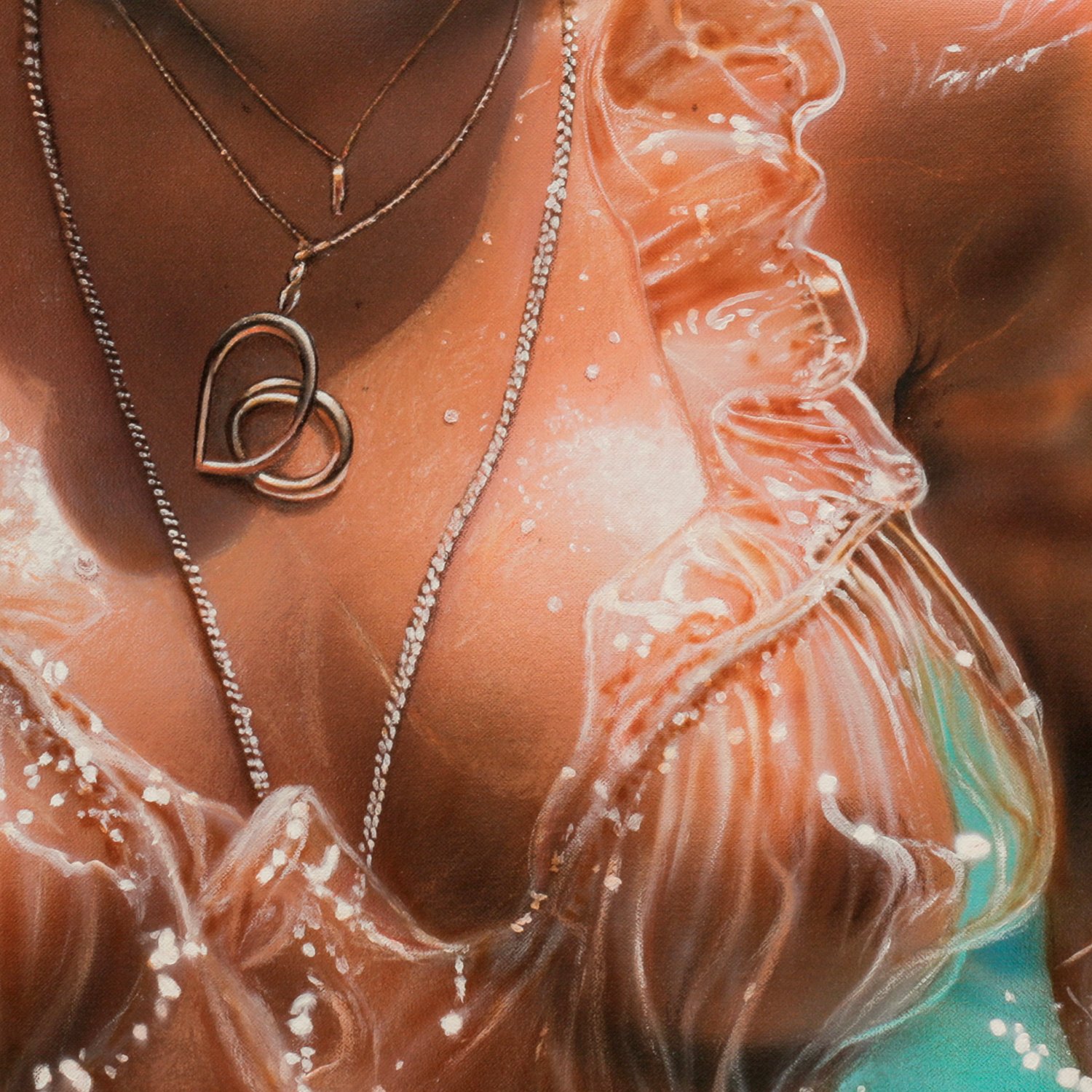 My love for painting both the beautiful female body and water in yet another work. Add to that the nice setting. Who wouldn't want to float in this warm relaxing water feeling the sun touch your skin?