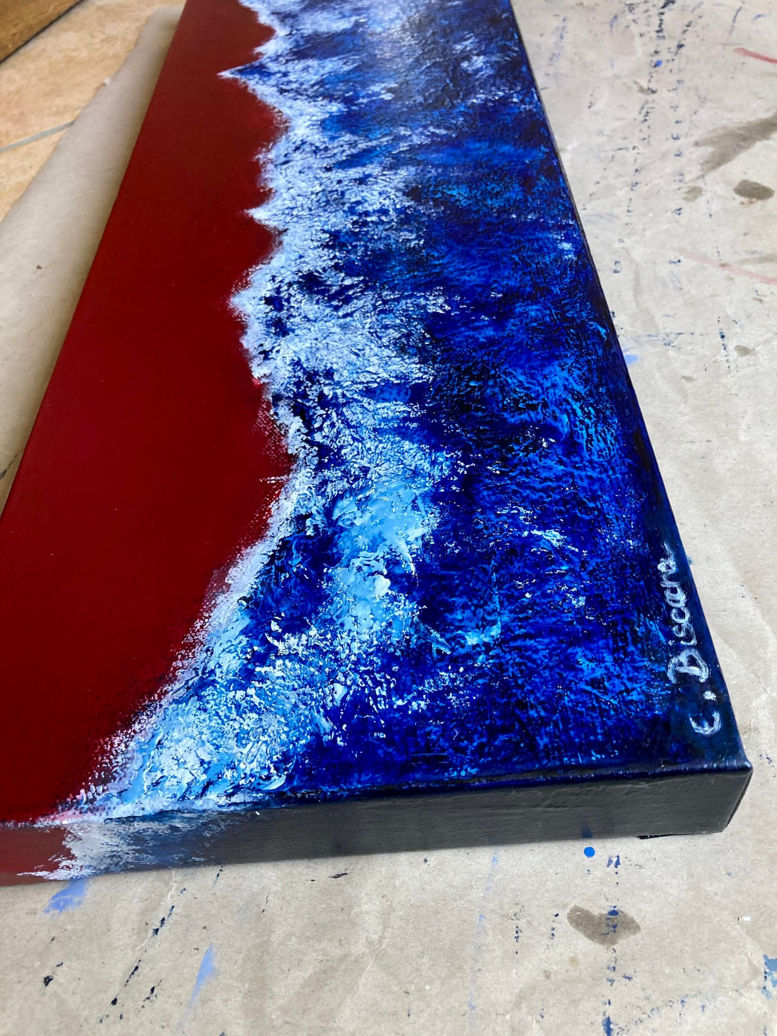 Ici une étude au couteau où j'ai voulu travailler les contrastes et les superpositions fortes, comme dans une illustration ou une estampe. Les forts contrastes de couleurs attirent l'oeil et si l'on s'approche une foultitude des détails apparaissent. J'ai beaucoup aimé travailler cette image comme si c'était une impression, un dessin naïf.