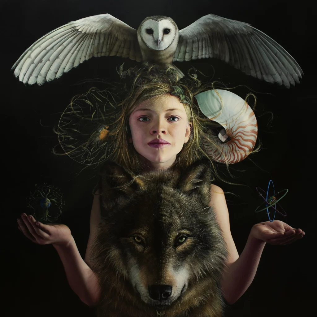 That’s one of the most frequent questions I get. People always want to know the number of hours. But it really depends on the size of the work and the number of elements in it. For example, to paint the fox in the painting, I had to do it hair by hair, then apply layers of glaze, and I can repeat that process up to five times.
